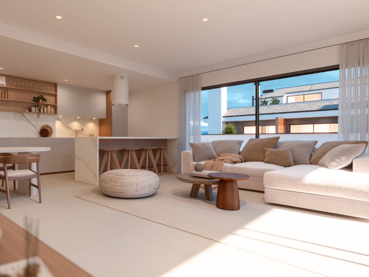 Spacious integrated living rooms and kitchens rooms and sunny terraces.