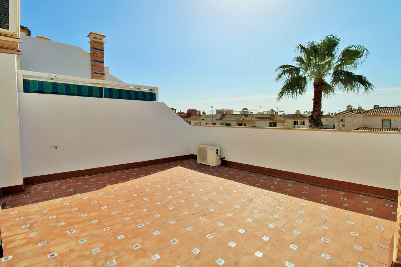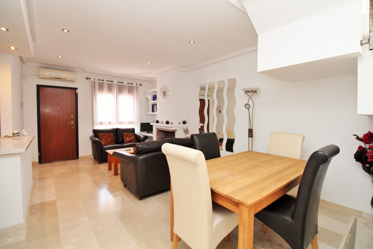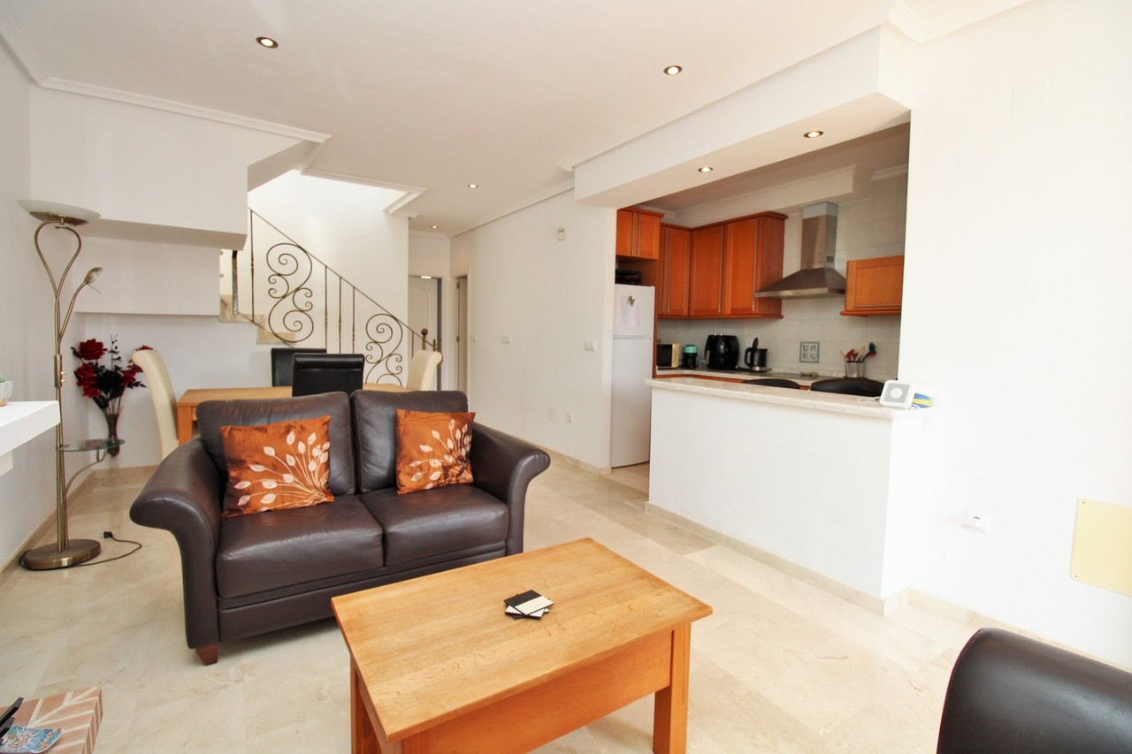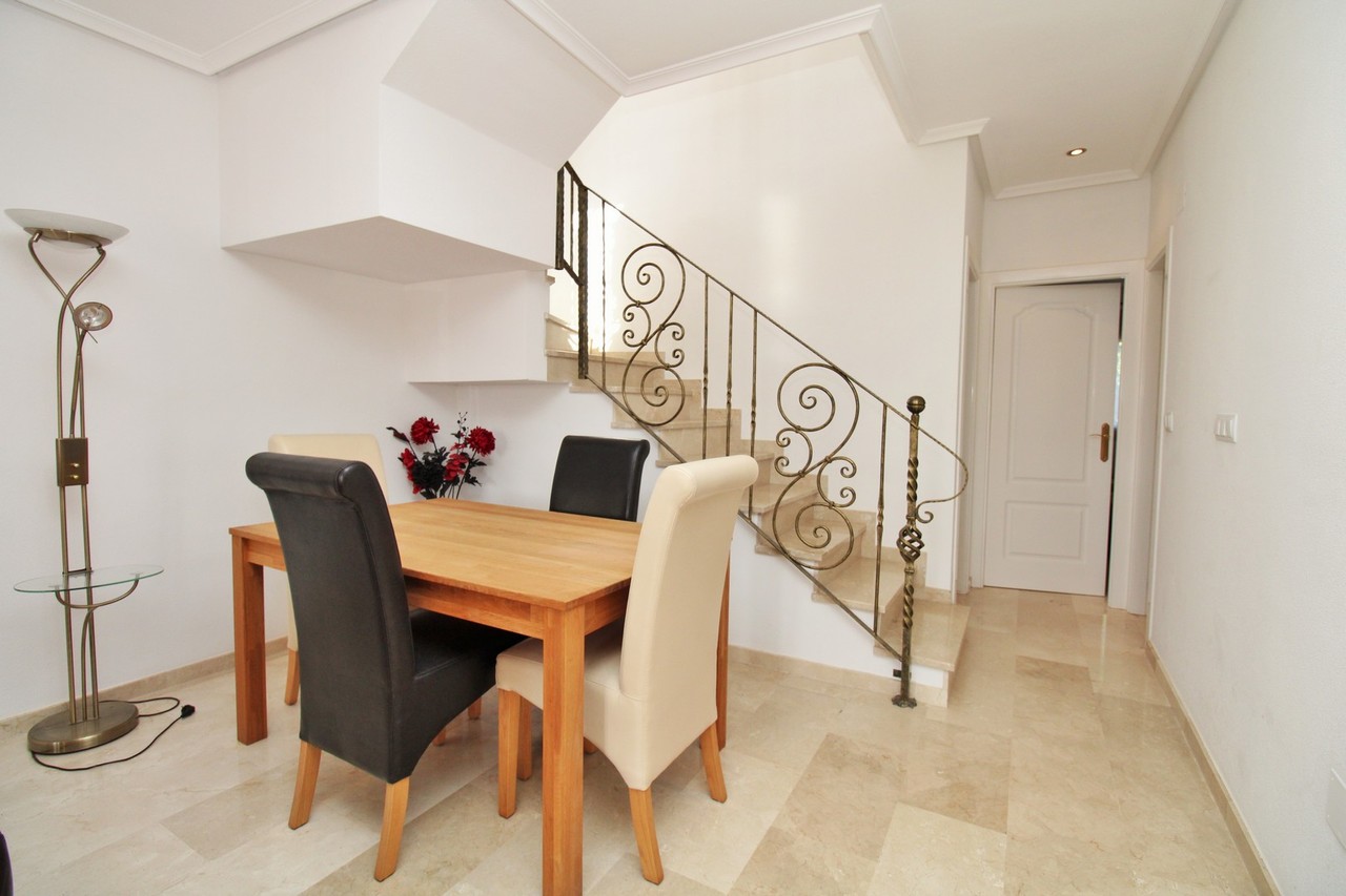 A superb example of the ever-popular Buhardilla-style townhouse, ideally situated in Pau 8, Villamartin. The property enjoys a prime position, just a 10-minute walk from the renowned Villamartin Plaza and golf course, where you’ll find an excellent choice of restaurants, bars, and shops. The house is offered fully furnished, complete with white goods and air conditioning, and is beautifully presented throughout.