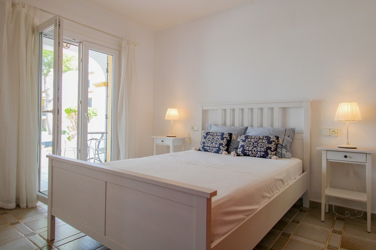 The property boasts spacious front and rear terraces with open views over the lush green areas, ideal for relaxing, entertaining, or enjoying the Mediterranean sunshine. Inside, you’ll find a welcoming lounge and dining area with a cosy fireplace, complemented by air conditioning and ceiling fans for comfortable living all year round. The home has been thoughtfully decorated, blending modern touches with the charm of traditional Spanish style. The layout comprises: 2 double bedrooms on the ground floor, both with fitted wardrobes, plus a family bathroom. On the upper level, the master suite enjoys an en-suite bathroom and access to a private terrace overlooking the pool.