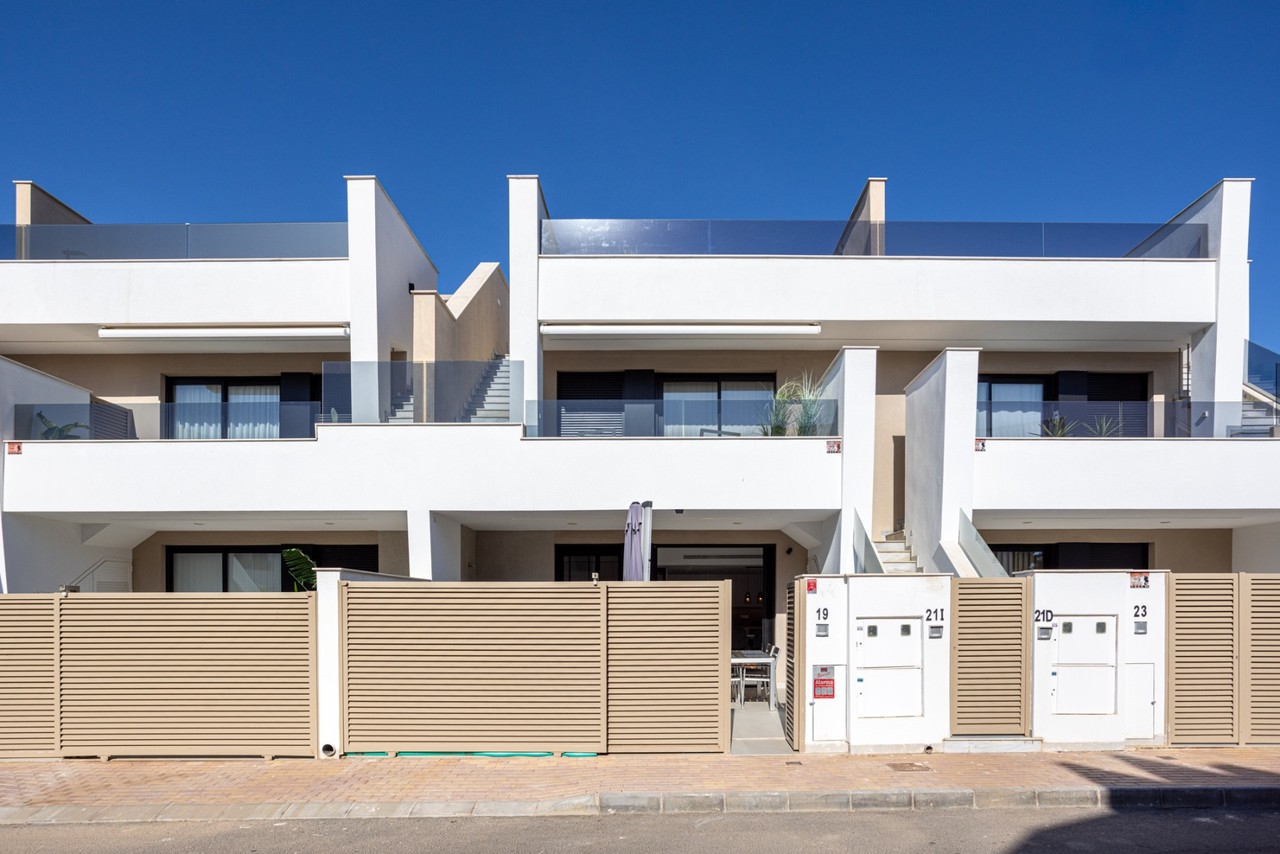 Discover this beautiful ground floor apartment, located in one of the most sought-after areas of San Pedro del Pinatar, just minutes from the sea and surrounded by all the amenities you need for a comfortable and peaceful life or a perfect holiday. With 80 m² of living space, this home offers a functional and modern design, divided into three bedrooms with fitted wardrobes, two full bathrooms, and an open-plan kitchen that flows seamlessly into the living-dining room, creating a bright and airy space, ideal for enjoying time with family or friends. The third bedroom is particularly special: the entrance to it is a fully sliding wall, which can be converted from a bedroom into an additional living room in seconds. From the living room there is direct access to a cozy private veranda, perfect for having breakfast outside, relaxing with a book or enjoying the warm Mediterranean evenings. Amenities that make a difference: Communal swimming pool surrounded by greenery to cool off on the hottest days, which is also heated by the various communal solar panels for year-round use. Private parking on the terrace Storage space for extra storage space Underfloor heating in the bathrooms Air conditioning (central) installed for year-round comfort Delivered furnished and with built-in appliances, ready to move into without any worries Ideal location: Just a 6-minute drive from the beaches of the Mar Menor and the Mediterranean Sea 3 minutes walk from supermarkets, shops, restaurants and recreational areas 30 minutes from Murcia International Airport 15 minutes from various golf courses The east-facing location guarantees excellent ventilation and natural light throughout the day, providing cooling in summer and warmth in winter. This property is perfect as a primary residence, second home or even as a holiday rental investment. Don’t miss this opportunity to live by the sea with all amenities!