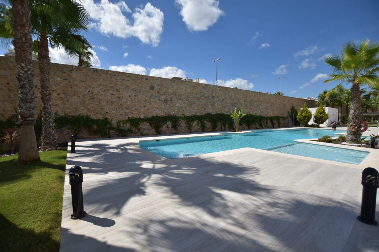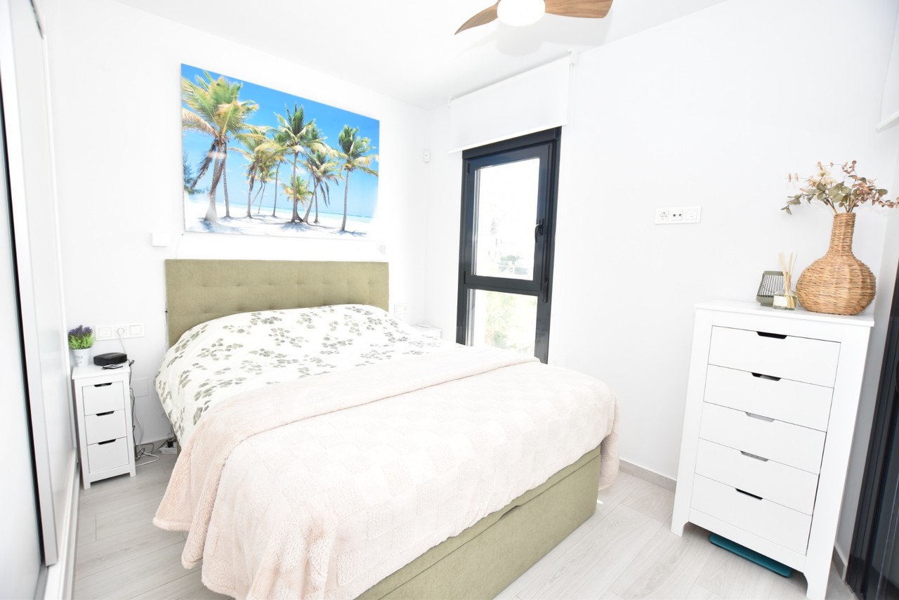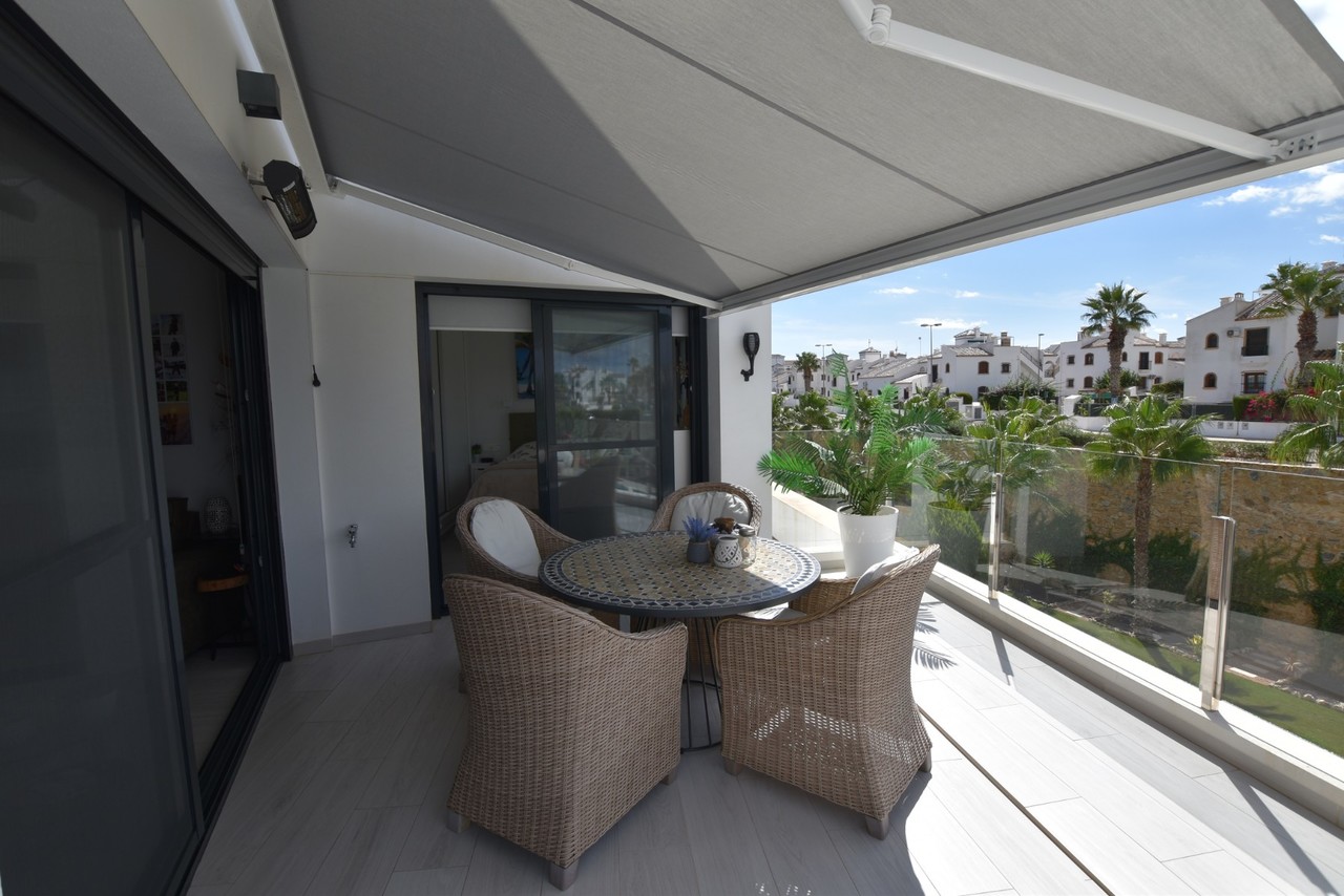 Modern 3-Bedroom Apartment with Spacious Southwest-Facing Terrace in Residencial Soleil, Villamartín This stylish apartment in Residencial Soleil, Villamartín offers the perfect balance of modern design, comfort, and Mediterranean lifestyle. With an ideal location close to golf courses, beaches, and all essential amenities, it is a fantastic choice as a permanent home, holiday retreat, or investment. Highlights of the property: 83 m² of interior living space plus a 53 m² southwest-facing terrace 3 bright bedrooms and 2 modern bathrooms with underfloor heating Contemporary open-plan kitchen with water filtration and anti-limescale system Ducted air conditioning throughout Two retractable awnings on the terrace Includes underground parking space and private storage room The apartment is part of a modern residential complex with landscaped gardens and communal areas. In the immediate surroundings, you will find supermarkets, shopping centres, restaurants, golf courses, and some of the best beaches on the Costa Blanca. With Alicante Airport just 30 minutes away, this property offers an excellent combination of convenience, location, and lifestyle. It is move-in ready and a rare opportunity in one of the most sought-after areas of Orihuela Costa.