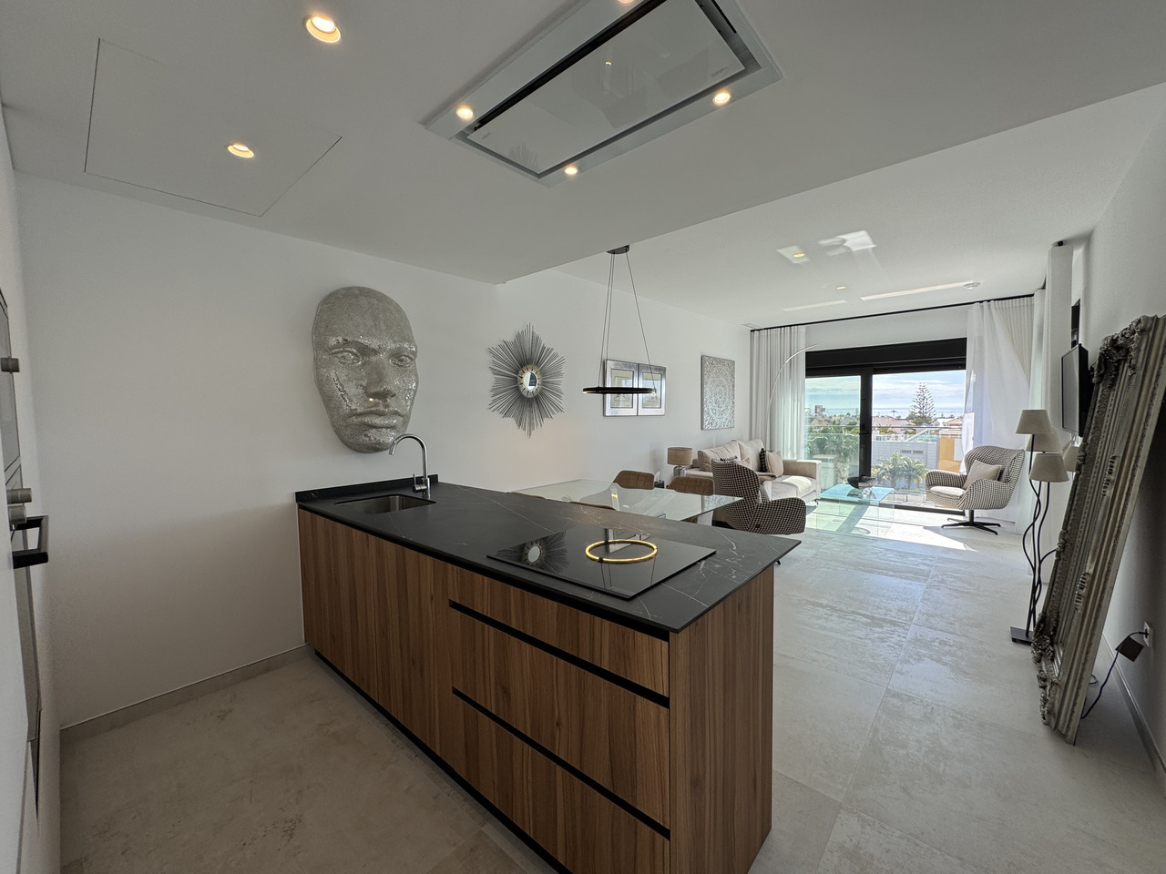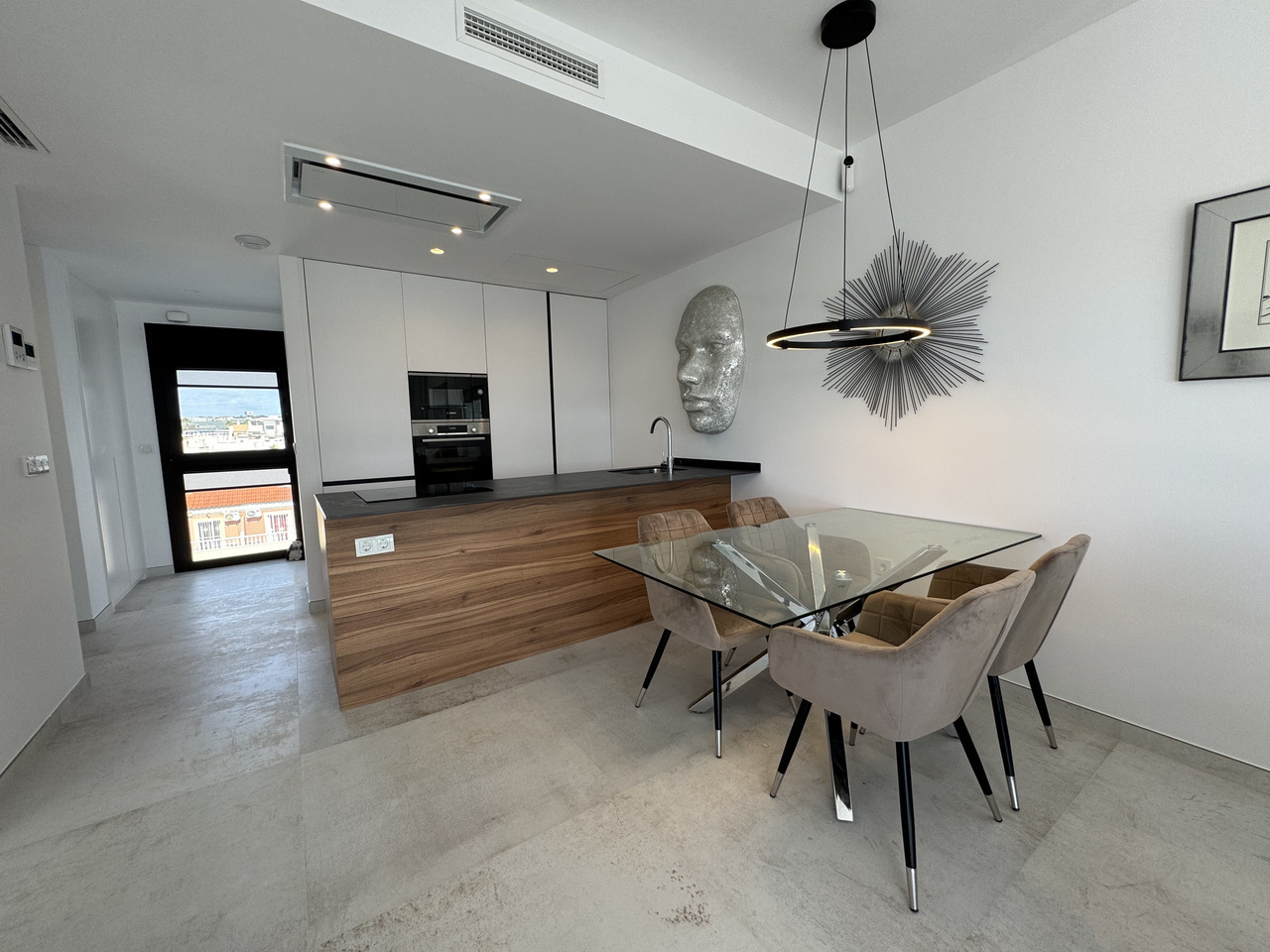 Welcome to your elevated retreat in the very center of La Zenia — a luxurious 2-bedroom, 2-bathroom penthouse that blends stylish modern design with unbeatable Mediterranean views.Built within the last three years, this property offers a bright, open-plan living and kitchen area equipped with sleek, high-quality appliances — perfect for entertaining or relaxed everyday living. From the living room, step out onto a private balcony facing the sea, where morning coffees come with ocean breezes.Each bedroom is spacious and filled with natural light, with the primary suite offering direct access to a second private balcony that faces inland, showcasing the vibrant local landscape.Upstairs, the private solarium is the crown jewel — a sun-drenched rooftop terrace offering 360º panoramic views of the sea and surrounding areas, ideal for sunset lounging, al fresco dining, or soaking up the sun in total privacy.With modern finishes throughout, secure entry, and its unbeatable location just moments from La Zenia Boulevard, beaches, and top dining spots, this penthouse offers a rare combination of comfort, style, and prime positioning.