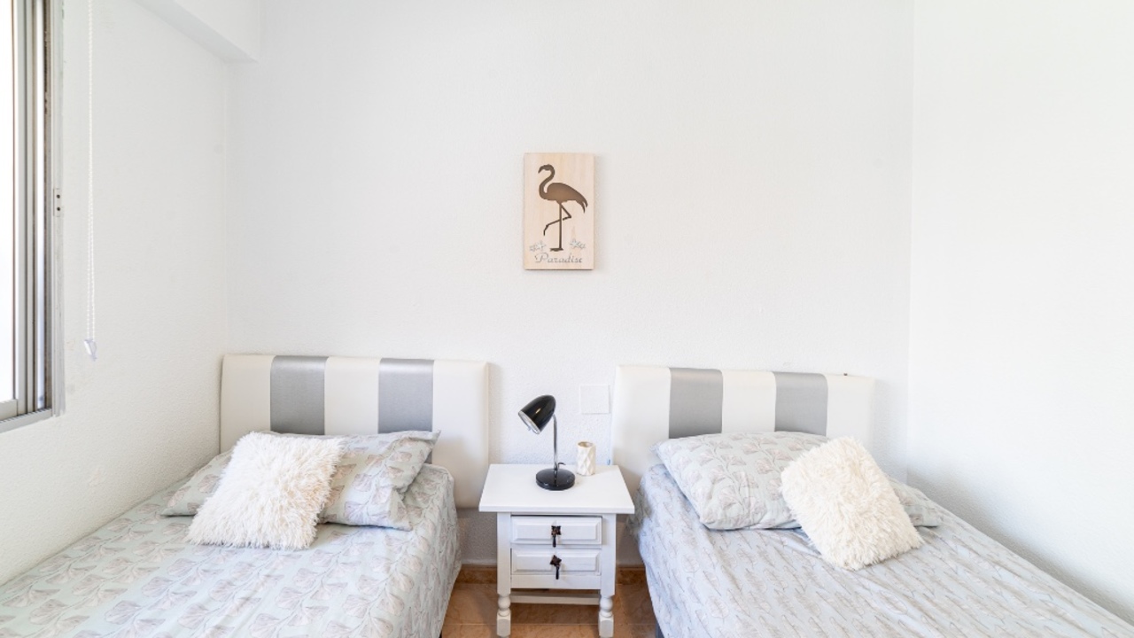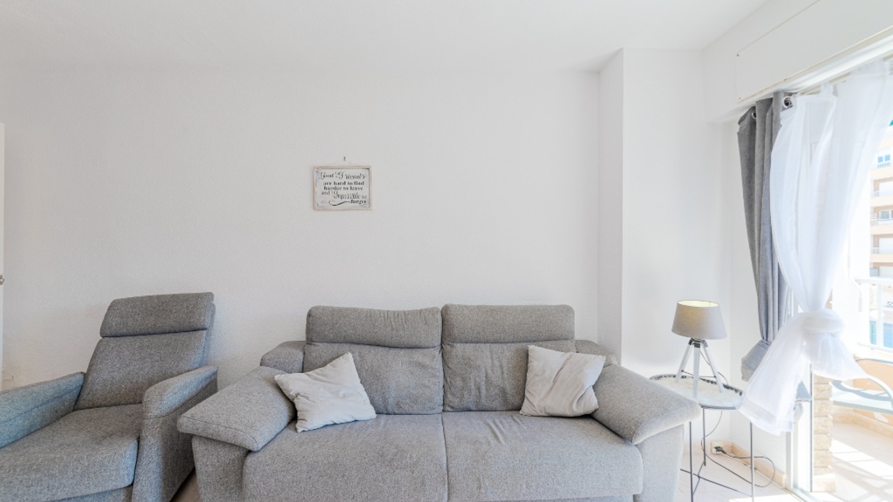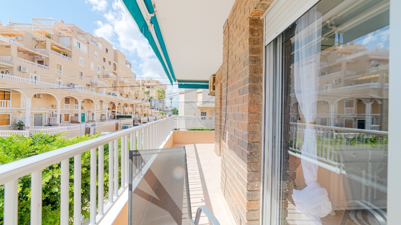 For sale apartment in Punta Prima, Costa BlancaThe apartment for sale consists: Entrance hallway, shower room, spacious living/dining room, fully renovated modern fitted kitchen complete with appliances, small side balcony, two double bedrooms both with fitted wardrobes and a large balcony complete with brand new awnings (toldos).The building benefits from secure external parking which is accessed by al electric gate, there is also a huge communal roof terrace with stunning views of the surrounding areas and there is also a lift in the building.The property has been lovingly renovated by the current owners including new furniture, there are also new ceiling fans and there is air conditioning.Punta Prima location is superb with a huge selection of bars, restaurants and shops just a couple of minutes walk away, as well as being so close to the sea!