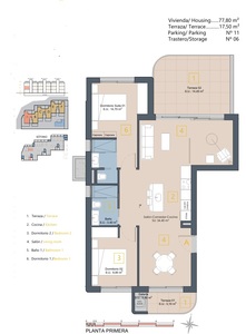 Every property consists of a bright and spacious living/dining room, a modern open plan kitchen, storage room, two bedrooms with fitted wardrobes, two bathrooms, a large terrace, electric shutters, pre-installation for air conditioning (hot/cold) throughout the property.