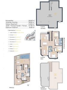 Every property consists of a bright and spacious living/dining room, a modern open plan kitchen, three bedrooms with fitted wardrobes, two bathrooms, electric shutters, LED lighting interior/exterior, pre-installation for air conditioning (hot/cold) throughout the property, a rooftop terrace/solarium (55sqm), a large terrace/garden with swimming pool and off road parking.