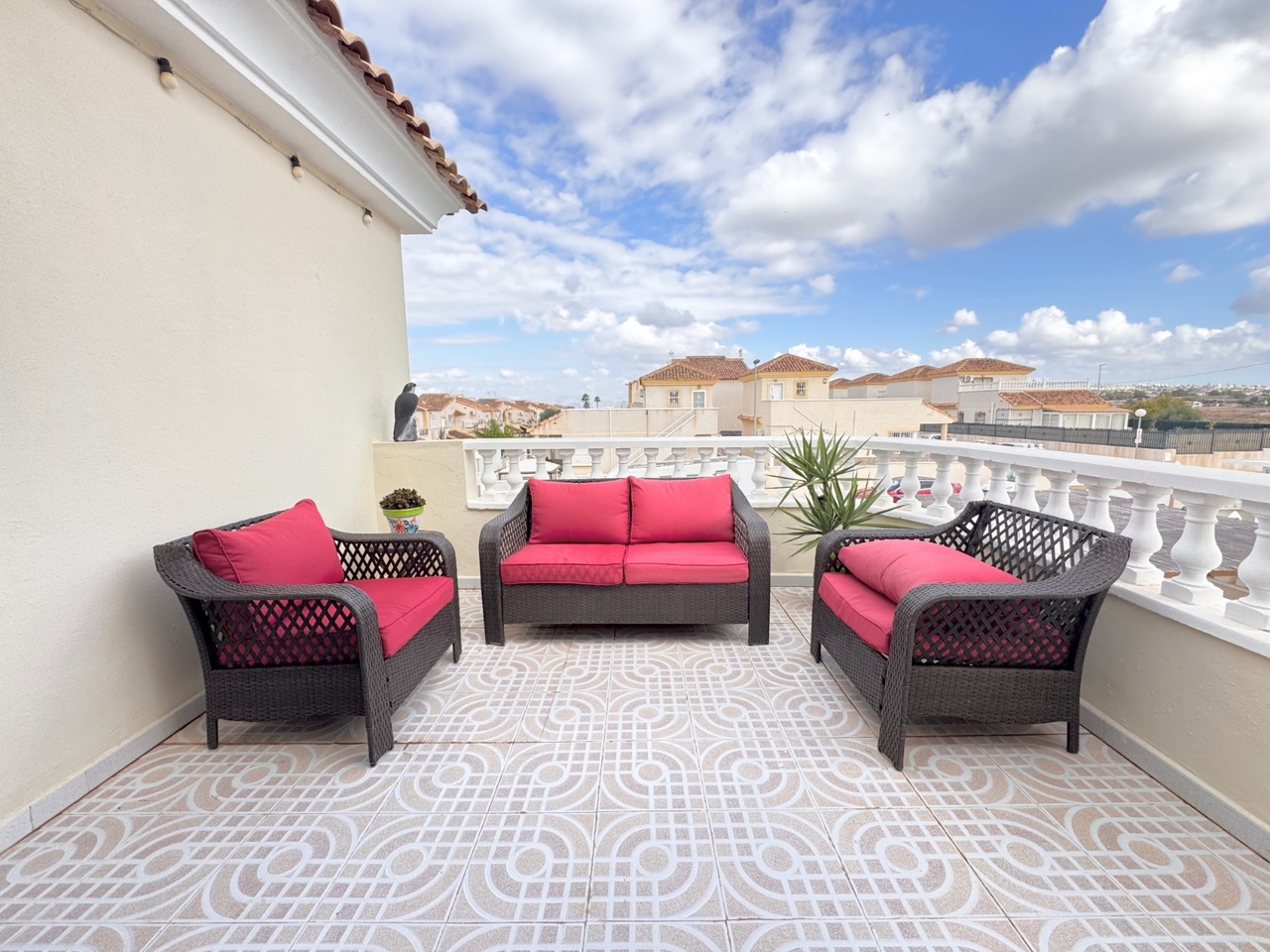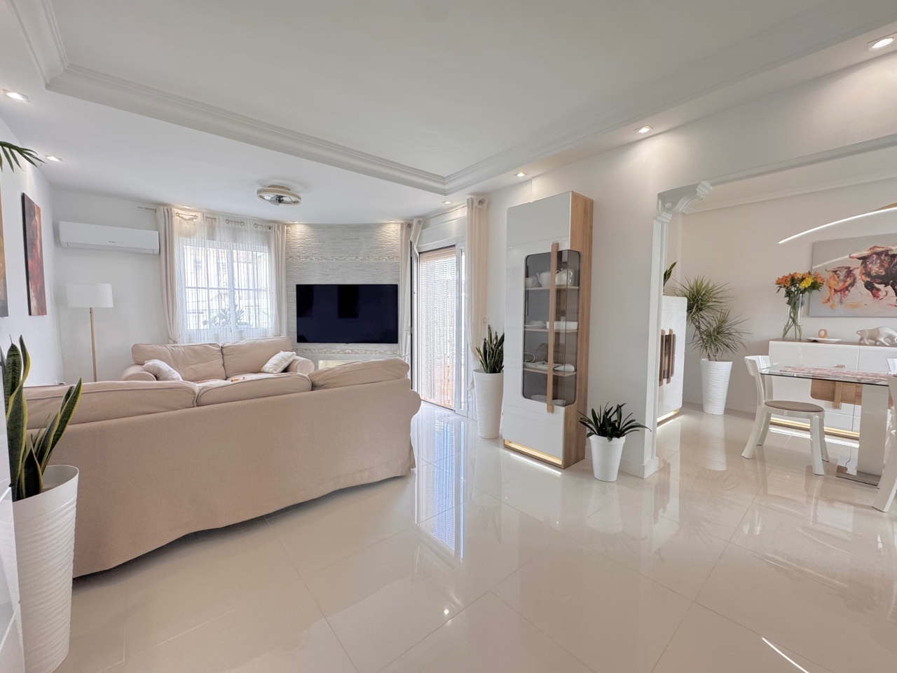 Discover this magnificent, fully and carefully renovated 3-story detached villa located in a quiet and secure development. Ideally located in Lo Crispin, just 1.5 km from shops and the highway, this property offers comfort, modernity, and a privileged living environment. Key Features: – Surface area: 225 m² spread over 3 floors. – Living areas: 5 large bedrooms, ideal for entertaining family and friends. – Bathrooms: 3 modern, fully equipped bathrooms. – Kitchens: 2 fully renovated and functional kitchens. – Storage: Built-in cupboards for maximum convenience. – Space to build your private 9×4m swimming pool High-end amenities: – Recent renovation: New tiles and latest-generation air conditioning system. – Secure access: Gate entrance to the development to ensure peace and quiet. – Exterior development: Pre-installation for a private pool has already been completed. Common Areas: Also enjoy two community pools, perfect for relaxing and cooling off on hot summer days. Ideal Location: – Accessibility: Close proximity to main roads and shops. – Surroundings: Two adjacent streets provide easy access and parking.