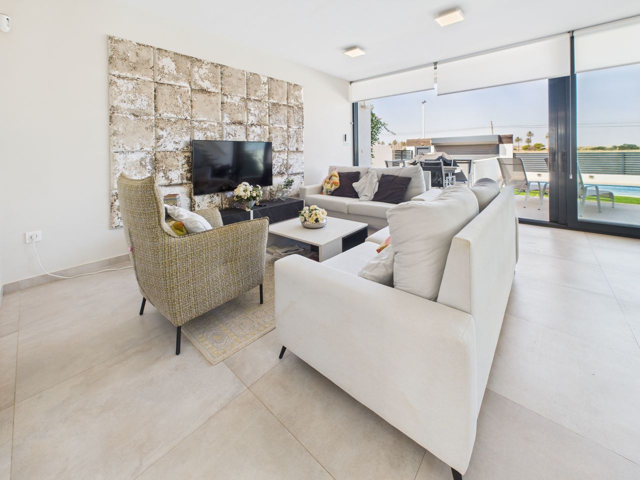 Elegant 3-Bedroom Villa with Spectacular Mar Menor Views – Walk to the Beach | Fully Furnished | Rooftop SolariumLocated in the sought-after seaside town of Mar de Cristal, this beautifully appointed 3-bedroom, 2-bathroom villa offers the perfect mix of modern comfort, outdoor living, and coastal charm. Just a few minutes’ walk from the golden sands and the calm, clear waters of the Mar Menor, this property is ideally positioned for those seeking a full-time residence, holiday home, or rental investment.Inside, you’ll find: A bright and spacious open-plan living and dining area Fully equipped modern kitchen with high-end appliances Master bedroom with en-suite bathroom and walk-in wardrobe Two additional bedrooms and a family bathroom Tasteful furnishings and finishes throughout – sold fully furnishedOutside, enjoy: A large private rooftop solarium with panoramic views of the sea A comfortable ground-floor outdoor seating area A private storage room for beach gear or bicycles Easy maintenance and low running costsSituated in a quiet residential area yet within walking distance of shops, restaurants, and the marina, this villa combines tranquility with convenience. The Mar Menor’s warm waters, ideal for swimming and water sports, are just steps away.Key Features: Sea views Rooftop terrace Walk-in wardrobe Fully furnished Close to the beach Great rental potentialDon’t miss your chance to own a slice of paradise on Spain’s Costa Cálida.