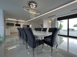 This luxurious modern villa spans three levels and features 5 bedrooms and 4 bathrooms, with and a stunning glass staircase with built-in led accent lighting and a convenient commercial elevator that seamlessly connect all floors.Nestled in the Las Comunicaciones neighborhood, the property is perched on a hill, offering stunning open views of the salt lake and coastline beyond. It’s just a 2-3 minute drive to the town center of San Miguel de Salinas, while Villamartin / Orihuela Costa are only 7 minutes away, providing easy access to all the amenities and attractions of the Costa Blanca South coastline.The villa features 5 bedrooms and 4 bathrooms, spread across two floors and a XL basement. The villa is being sold furnished.The ground floor welcomes you with an open-concept design includes a top of the line kitchen with central prep island, spacious dining area, large living space that looks out to the pool and separate laundry room off of the kitchen with storage. Also on this level you will find the master bedroom with views to the pool area, this spaces exudes style and comfort plus includes a large en-suite bathroom and walking closet/dressing room .The basement is designed for entertainment, with second full kitchen with breakfast bar, large living / home theater room, 2 bedrooms, 1 bathroom with tub and large storage room/wine cellar.Upstairs you will find a further 2 en suite bedrooms both with access to terrace and access to the solarium. All levels with fantastic open views.The garden features BBQ / Outdoor kitchen area, private pool with waterfall. Plenty of off street parking space on this gated secure private plot. Contact us today for further details and to book a viewing on this very special Luxury Family Villa!