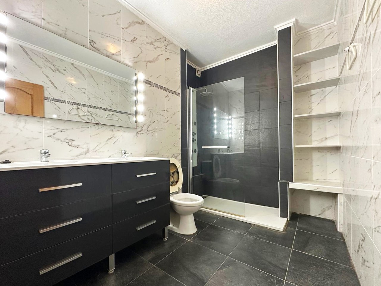Unique Oportunity. Orihuela Costa. Beautifull terraced villa for sale. If you’re seriously considering buying a property here in Spain, now is an ideal time to take advantage of a buoyant market, grab a bargain, and secure your investment for the future. This Mediterranean style terraced Villa on 2 levels, offers south front garden with BBQ area, a stylish living room with fireplace and underfloor heating and privat terrace. American style kitchen with breakfast bar, Guest toilet with shower and separate storage. On the lower level, you can enyoy a master bedroom with direct access to the back garden, a further 2 bedrooms, and 2 bathrooms with shower facilities. This property is looking for a new owner, with keen interest in upgrading or simply renovating to enjoy their holiday home or perhaps full-time family home in the established and prestigious Urbanisation of La Zenia, situated in the perfect location for all amenities, shops, bars, supermarkets and the very popular ‘Blue Flag’ beach of La Zenia are just a stroll away.