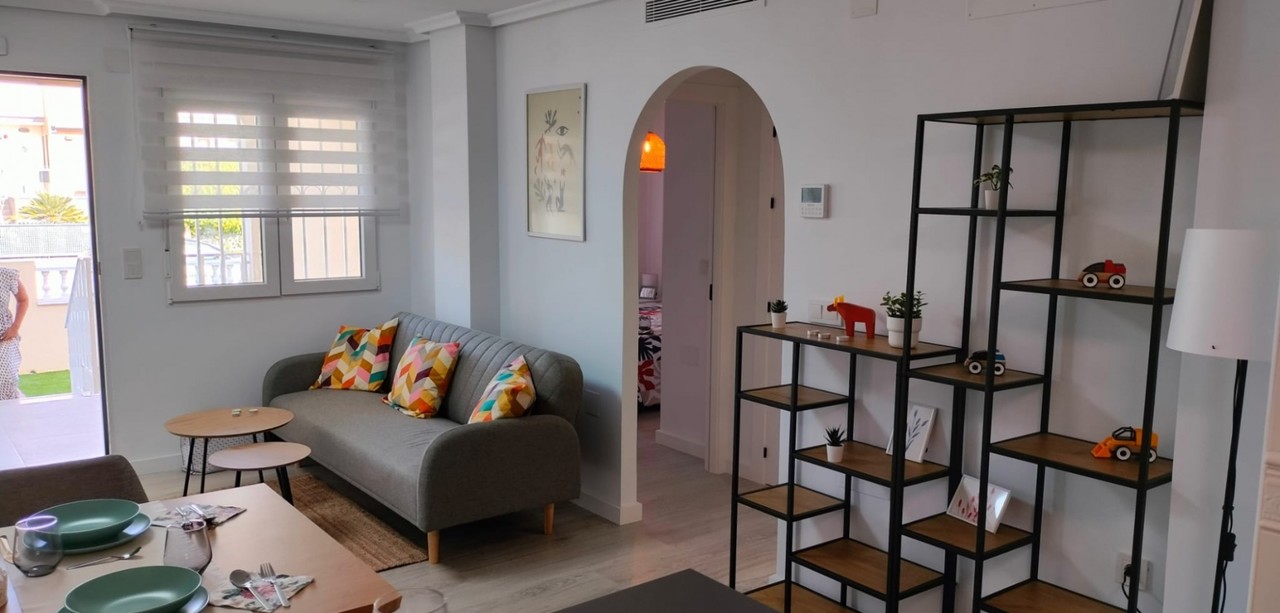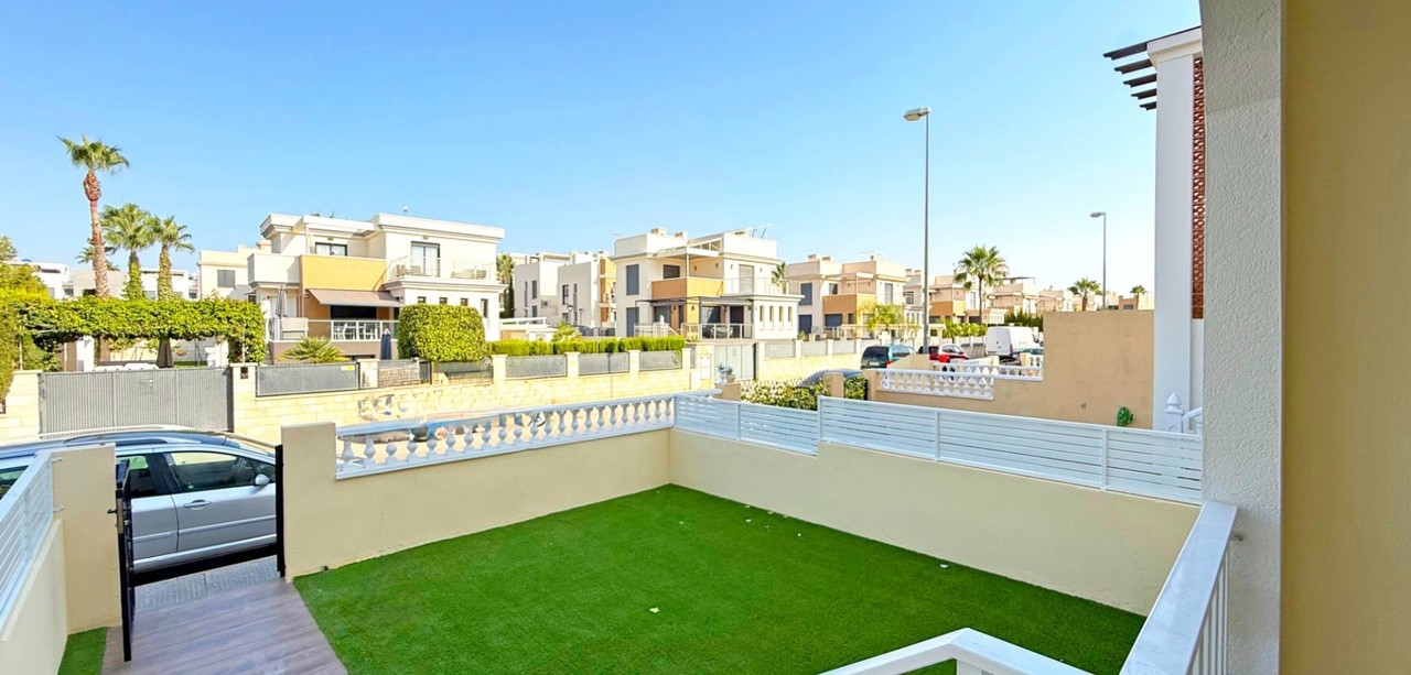 We are delighted to present this fabulous ground floor apartment, fully renovated to the highest standard and ideally situated in the sought-after area of La Zenia—just a short walk from all amenities and the famous La Zenia Boulevard. The property offers: 2 bedrooms and 1 stylish bathroom A bright, spacious living and dining area A fully fitted modern kitchen A large, sun-drenched terrace with artificial grass—perfect for relaxing or entertaining Two beautiful communal swimming pools surrounded by landscaped gardens Included in the sale: lights, quality furniture, ducted air conditioning, and a complete renovation throughout. La Zenia, on the stunning Costa Blanca in Orihuela, is perfectly placed for easy access to Alicante Airport (30 minutes) and Murcia Airport (20 minutes). The area boasts a blue flag beach ideal for families and water sports, plus three championship golf courses—Villamartin, Campoamor, and Las Ramblas—just minutes away. Local amenities are plentiful, with supermarkets, pharmacies, banks, bars, and restaurants all within walking distance. The highlight is La Zenia Boulevard, the largest shopping centre in Alicante province, featuring over 150 shops and restaurants, 160,000 m² of retail space, and 5,000 free parking spaces.