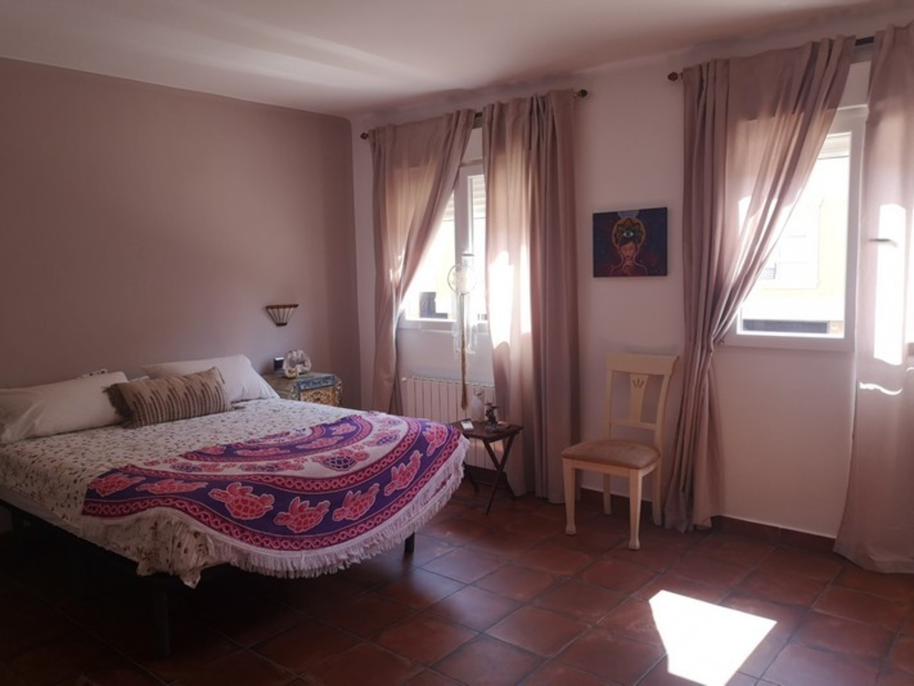 Gorgeous reformed townhouse in Los Montesinos which has been completely rebuilt and had all the rooms redistributed to allow for all the rooms to be much larger than usual, plus a fabulous front porch which is enclosed. Coming in the front gate, there is a large covered terrace which is almost like a second living room, and which leads to the front door of the house. On the ground floor of the property we have a very spacious living room, bathroom, bedroom (currently used as a gym) , separate kitchen with dining area and enclosed pantry. The pantry is quite a large room and actually doubles as a laundry room too! The first floor of the property has two extra large bedrooms, and family bathroom. One of the bedrooms has twin beds, triple built in wardrobes, and a large separate studying area. The master suite comprises of bedroom, walk in dressing room, and terrace, which has stairs that lead up to the solarium. Everything about this property is bespoke, from the furnishings, to the decoration, to the finish on the reform. You can see by flicking through the photos how amazing this house is!