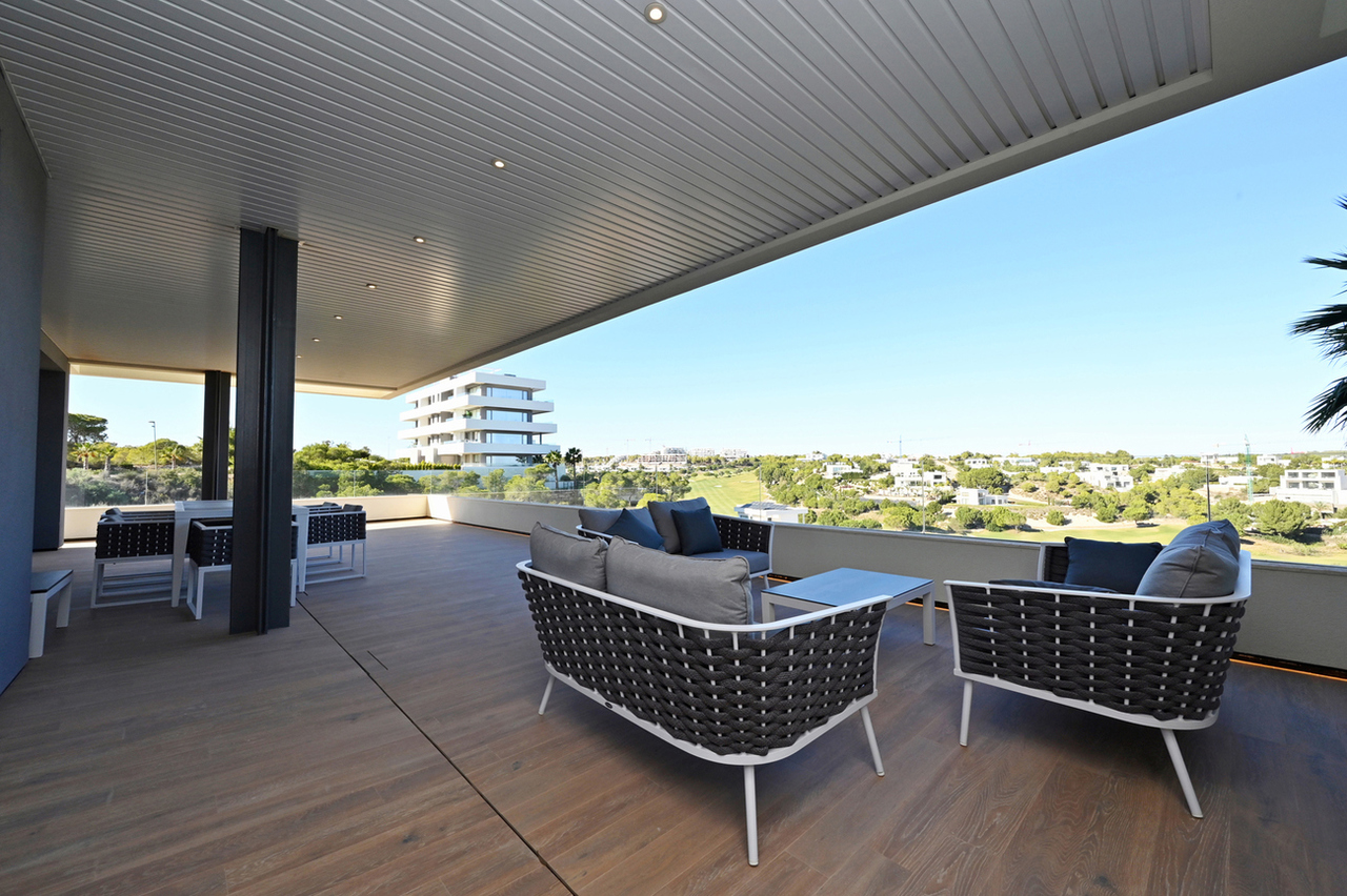 Geniet van een groot terras met een panoramisch uitzicht op de golfbaan en het mediterrane bos.Elke slaapkamer heeft toegang tot de zuidgerichte tuin.Inclusief parkeerplaats en ondergrondse berging.Inbegrepen : airco, meubels, keukentoestellen, verlichting, alarmsysteem, BBQ, elektrische rolluiken.Bouwjaar : 2021 Gemeenschappelijk : Infinity buitenzwembad en verwarmd binnenzwembad met fitnessruimte.Drie minuten van de club en de supermarkt Las Colinas.15 minuten met de auto naar de stranden van Campoamor en Mil Palmeras, andere golfbanen, San Miguel de Salinas en La Zenia Boulevard shopping center.