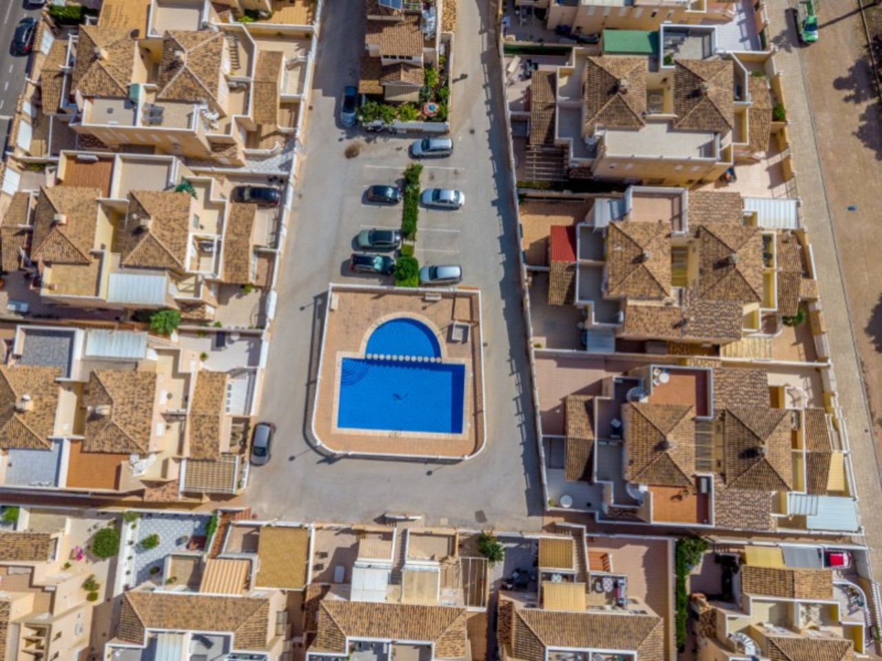 This very well-maintained cosy flat has a bright living room with access to the terrace, 2 bedrooms, bathroom, kitchen with access to a practical storage room, light and a lovely sunny and lush garden.A spacious outdoor storage room is also available. The flat is southwest facing and is located in a quiet area with only small houses near a park area.The home is sold partially furnished.Rocio II is a well-maintained urbanisation just 500 meters from the Mediterranean Sea, where several are year-round residents and contribute to a safe and vibrant urbanisation.Economy Asking price 169.000€ + costs of about 12%Common expenses: 117€ x 2 per year Housing tax: 151,96€ x 2 per yearGarbage fee 55,10€ X 2 per yearAreaShort walk to a varied selection of restaurants, grocery stores such as Mercadona and Aldi, as well as other facilities such as Jysk, Rossman, Pepco, flower shop, bank, optician, veterinary surgeon, and more.Easy access to La Mata beach and Playa los Locos beach for relaxing wonderful beach days.Short distance to bus connection in the area that takes you towards the centre of Torrevieja or La mata if you do not want to walk.Enjoy a cosy newly renovated pool area for water activities, relaxation and community.Take the opportunity to own this dream home in a charming and well-run urbanisation, perfect for those who value comfort, convenience and a relaxed lifestyle with all amenities close by.TorreviejaTorrevieja is a city in the Alicante province in the Comunidad Valenciana region of Spain. The city is a popular tourist destination located about 40 minutes drive from the big city of Alicante and the airport. Torrevieja was originally a small fishing village, and is today one of Europe’s largest salt producers, Torrevieja has previously been called the ‘salt city’, but in recent years the city has also been named ‘the sports city’, this because of the large sports arenas that have been built in recent years. As a result of this fantastic investment, Torrevieja became one of four host cities during the Women’s Handball World Championship in 2021.When you live in Torrevieja, you are within a short walking distance to white, elongated sandy beaches with the ‘blue flag’ stamp, as an indication of, among other things, high water quality. In the immediate area and preferably ‘right outside’ the door you will find a large selection of local shops, restaurants, cafes, shopping centres, green parks, the harbour and the promenade. If you are looking for an area with life all year round and a healthy microclimate with 320 days of sunshine a year, this may be for you.