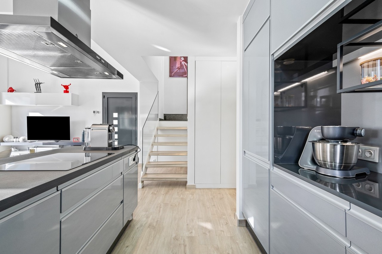 On the main floor, we find a spacious and bright living room with a pellet stove to make the colder months more cozy, and an open kitchen, perfect for enjoying with family or friends. On this same floor, there is a bedroom, a guest toilet, a practical laundry room, and access to an elegant glazed terrace, equipped with an electric aluminum roof and sliding glass, ideal for enjoying year-round.