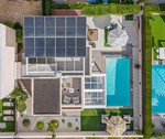 The home is equipped with solar panels, a home automation system, a water softener, and an electric awning. It is sold fully furnished, ready to move into.