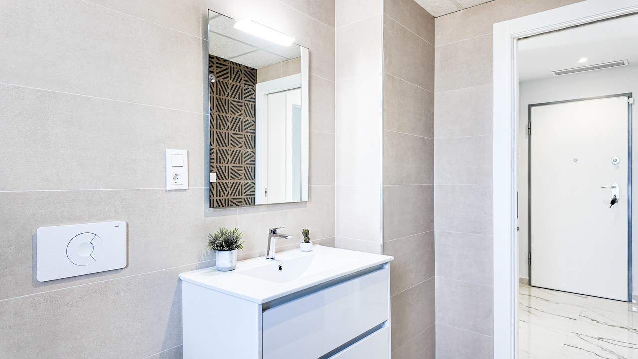 Modern apartments are for sale on the sunny coast of Orihuela Costa. The house has an area of 95 m², which makes it spacious and bright, suitable for any lifestyle. The apartments have 2 cozy bedrooms and 2 equipped bathrooms. The open plan includes a kitchen combined with a living room. You can exit to a charming balcony from the kitchen.Also, the apartment has an impressive terrace of 20 m². This open space is perfect for outdoor dinners or simply relaxing in the sun, serving as a natural extension of the living room.The apartment is equipped with central air conditioning. There is an elevator in the building.Residents have access to a communal pool – an ideal place to cool off and socialize with neighbors and friends. The complex also has a jacuzzi, gym, and sauna.The price includes a garage and a storage room.Perfect location: The apartment is located in Orihuela, a city known for its stunning beaches and vibrant coastal lifestyle, just a few steps away from everything you may need, from local restaurants to shops. Thanks to the south-facing orientation of the house, natural light fills every corner, creating a warm and cozy atmosphere.Online reservation is possible, as well as purchasing on credit from a bank at 4-6% per year.