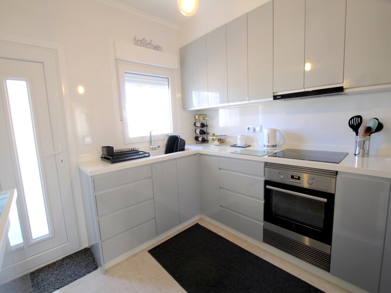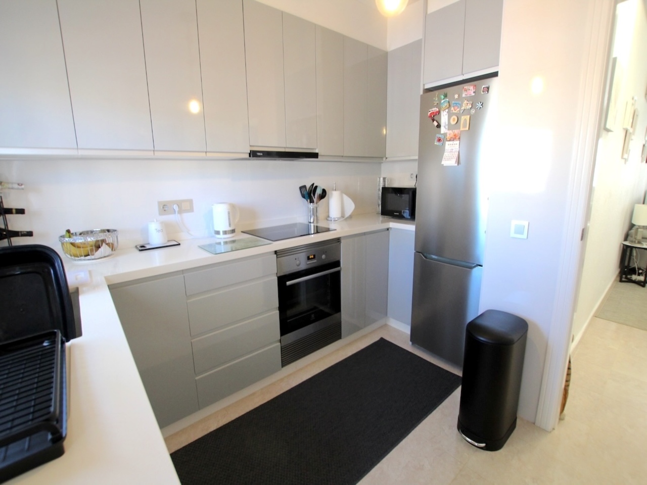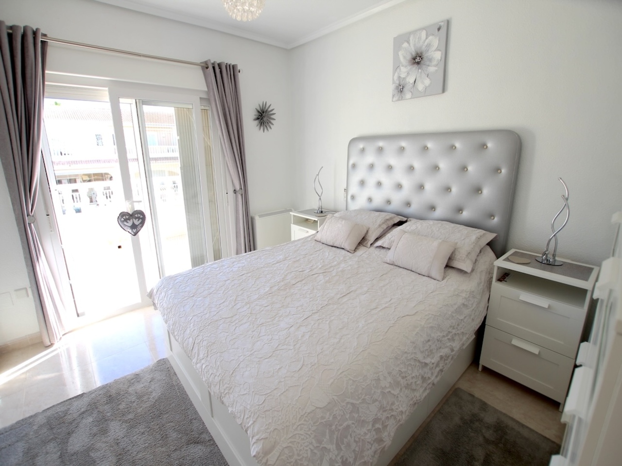 From the kitchen, access a fully tiled rear garden that opens directly onto the communal pool and gardens — perfect for entertaining or enjoying the Spanish sunshine.