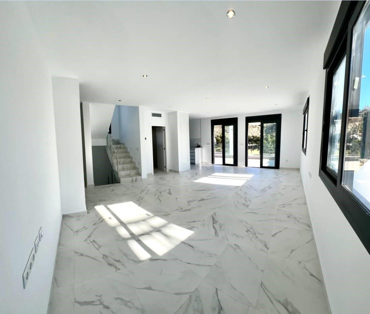 Luxury brand new 3 bedroom 3 bathroom villa front line to La Marquesa Golf course in Ciudad Quesada, terraces overlooking the golf course, sports area, sauna, and private pool. It is located in a location with medical services, Swedish school, public schools, playgrounds, 15 minutes from the beaches of Guardamar and 5 minutes from the old town of Rojales.
