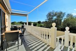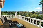 Inside, the ground floor features a bright and airy living and dining area, a large independent kitchen with access to the terrace, plus a double bedroom and a bathroom with walk-in shower. Upstairs, there are three double bedrooms with fitted wardrobes and a family bathroom. The master bedroom benefits from an en-suite bathroom and access to a private balcony with pool views. Internal stairs lead up to the generous roof solarium, complete with a retractable awning and lovely open views of the sea and surrounding area.
