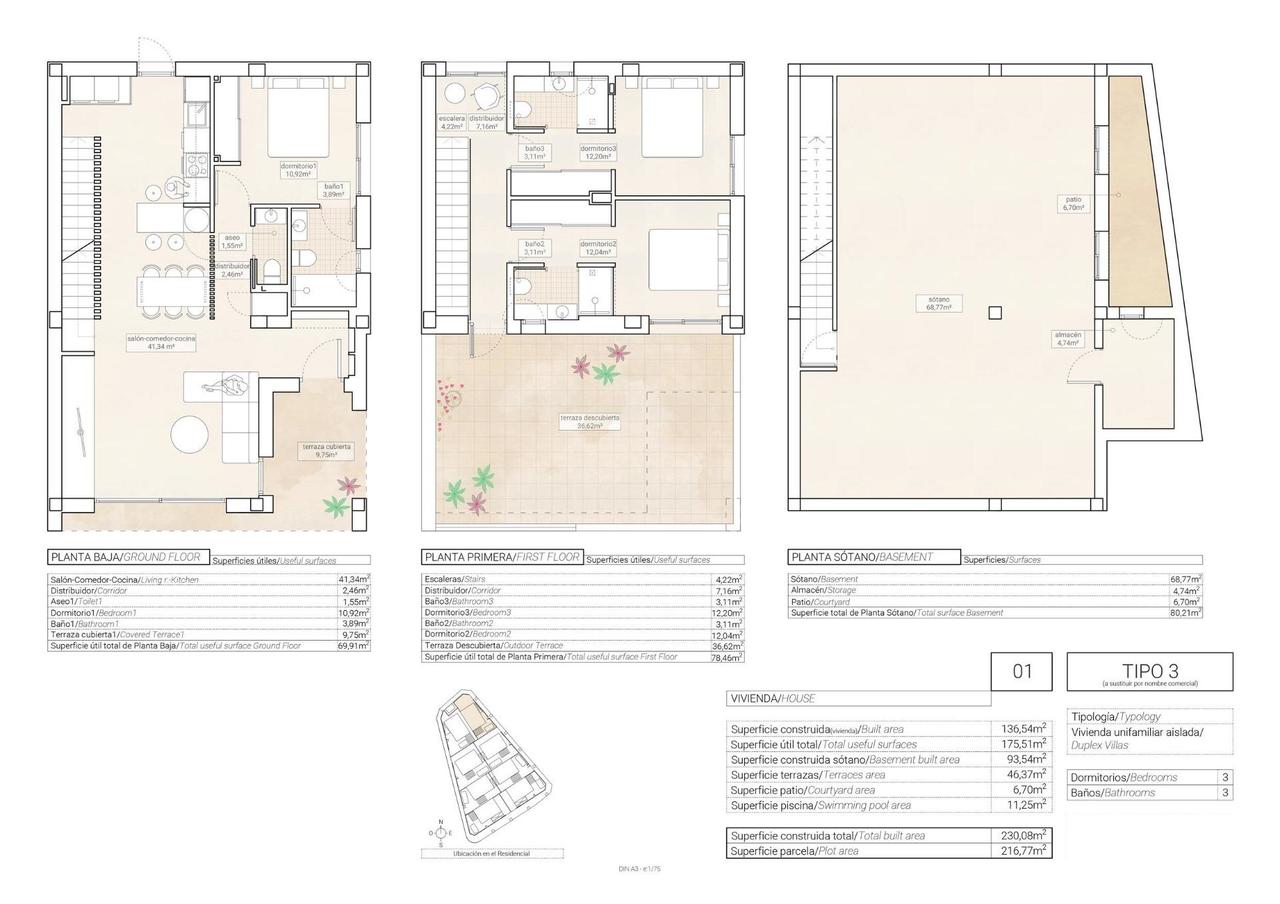 NEW BUILD VILLAS IN HONDON DE LAS NIEVES Modern New Build villas in Hondon de las Nieves. Villas composed over two floors and basement with English courtyard, has 3 bedrooms, 3 bathrooms, guest toilet, open plan kitchen with the lounge area, fitted wardrobes, terrace and private solarium. The spacious plots have a private garden with a swimming pool, a barbecue area, and the possibility to add a parking space. Hondón de las Nieves is a town in the Valencian Community, Spain. It is located in the southwest of the province of Alicante, in the region of Vinalopó Medio. The beaches and Alicante Airport are closely just 30 minutes drive away.
