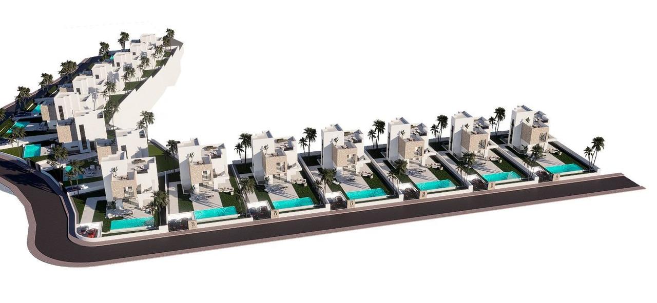 NEW BUILD VILLAS IN FINESTRAT New Build villas located in Balcon de Finestrat. New Build deverlopment of 15 totally independent luxury villas in a unique setting close to the best beaches of the Mediterranean and all services. Villas build over 2 floors, plus basement, and has 4 bedrooms, 4 bathrooms, open plan kitchen with lounge, build-in wardrobes, private solarium, garden with the pool and parking space for 2 cars. An option you can have a lift at an extra cost. Villas located close to 2 golf courses, theme parks, a large shopping centre and a few minutes from the beaches of Benidorm. Finestrat located in the Marina Baixa region of the Costa Blanca, close to neighbouring Benidorm and about 40 kilometres from the city of Alicante and the international airport. Benidorm is just a five-minute drive from the properties and offers all the services you would need including shops, bars, restaurants, supermarkets, banks, pharmacies and several private international schools. Close to the beaches of Levante, Poniente and Cala de Finestrat, with more than 6km in length that are among the best in Europe awarded by the European Union with Blue Flags. All leisure services such as the theme parks of Aqua Natura, Terra Mítica, Terra Natura, Aqualandia and Mundomar, Sierra Cortina and Villaitana Golf courses, hiking and climbing in Puig Campana an incomparable natural setting or enjoy of nautical sports.