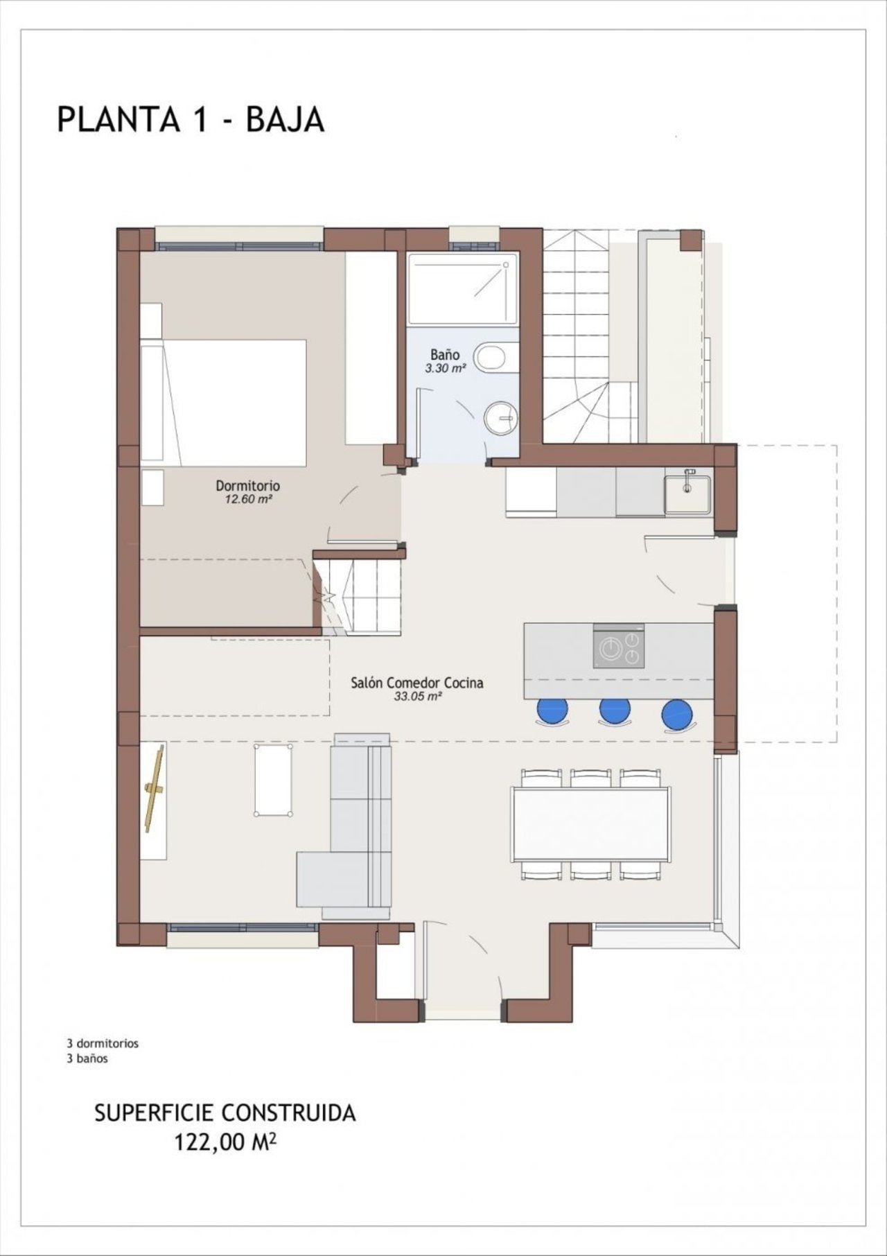 - 3 bedrooms