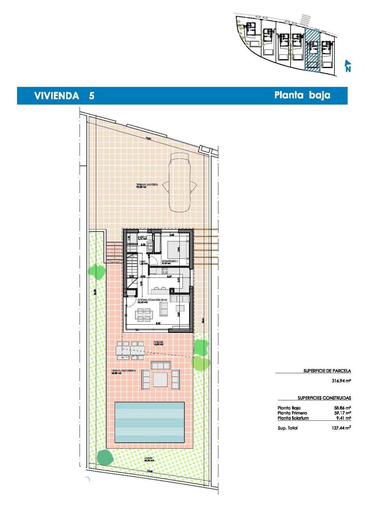 NEW BUILD VILLAS IN PILAR DE LA HORADADA ON THE GOLF COURSE New Build residential consists of 6 exclusive villas with 3 bedrooms and 3 bathrooms located on the front line of the Lo Romero golf course and only a few minutes away from the nearest beach. â € In addition, each villa has its own plot with private swimming pool, parking space and terrace with solarium and summer kitchen. Pilar de la Horadada is the southernmost town and municipality on the Costa Blanca in the province of Alicante. The city is located on the border between the Comunidad Valenciana and the Murcia region. The town of Pilar de la Horadada is a typical Spanish town located just 2 km from the coast and the popular beaches of Torre de la Horadada. In the centre of Pilar de la Horadada you will find all amenities: shops, patisseries, banks, etc. along the main street ‘Calle Mayor’. You will also experience a wonderful atmosphere near the local church on the ‘Plaza de la Iglesia’ where there are several cafes. In Pilar de la Horadada there is also a well-developed cycling and walking path network, and there is also a large offer of various sports activities. Lo Romero 18 hole golf course is just a short drive from town. The airports of Corvera (Murcia) and Alicante are respectively 40 and 55 minutes away.