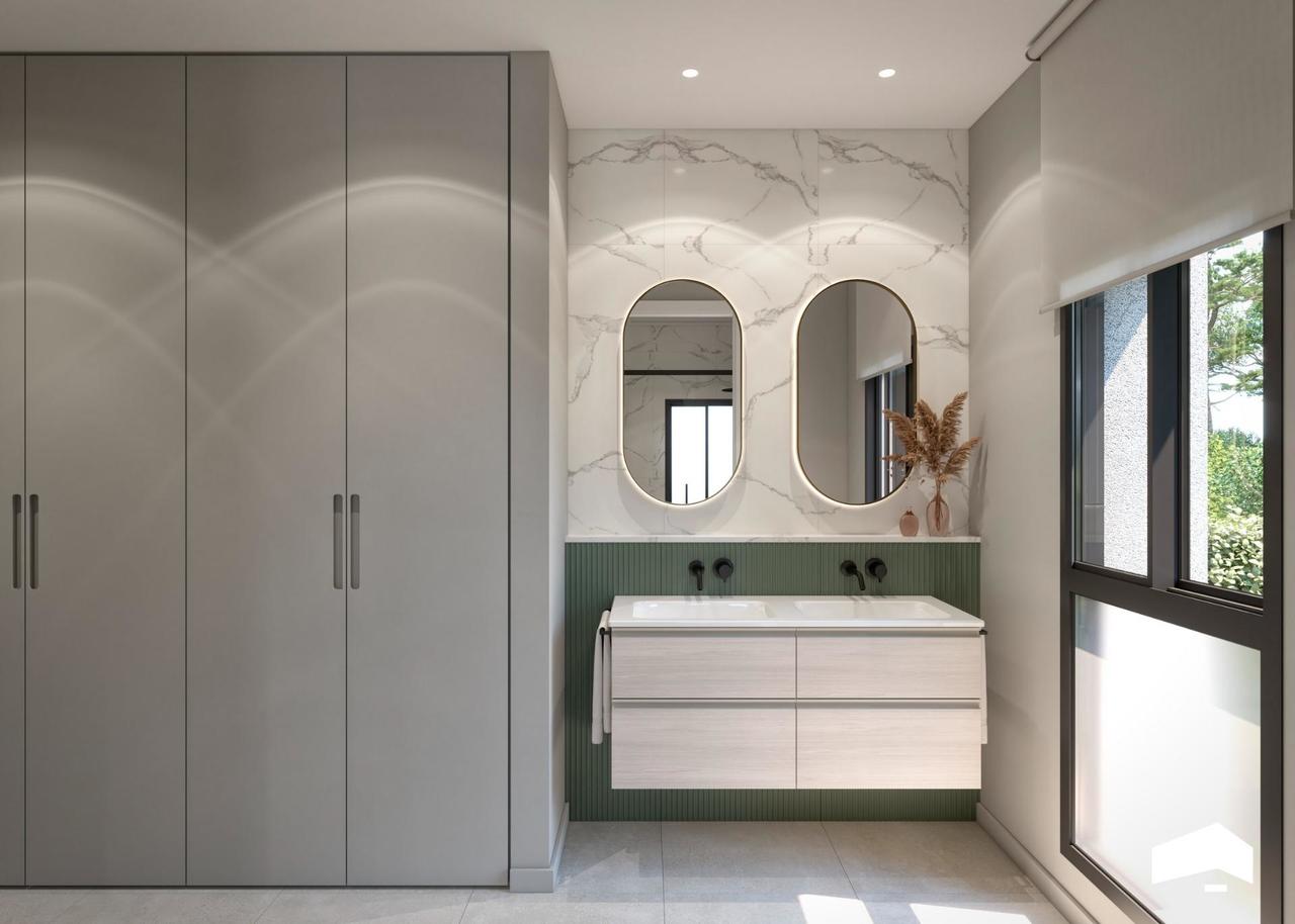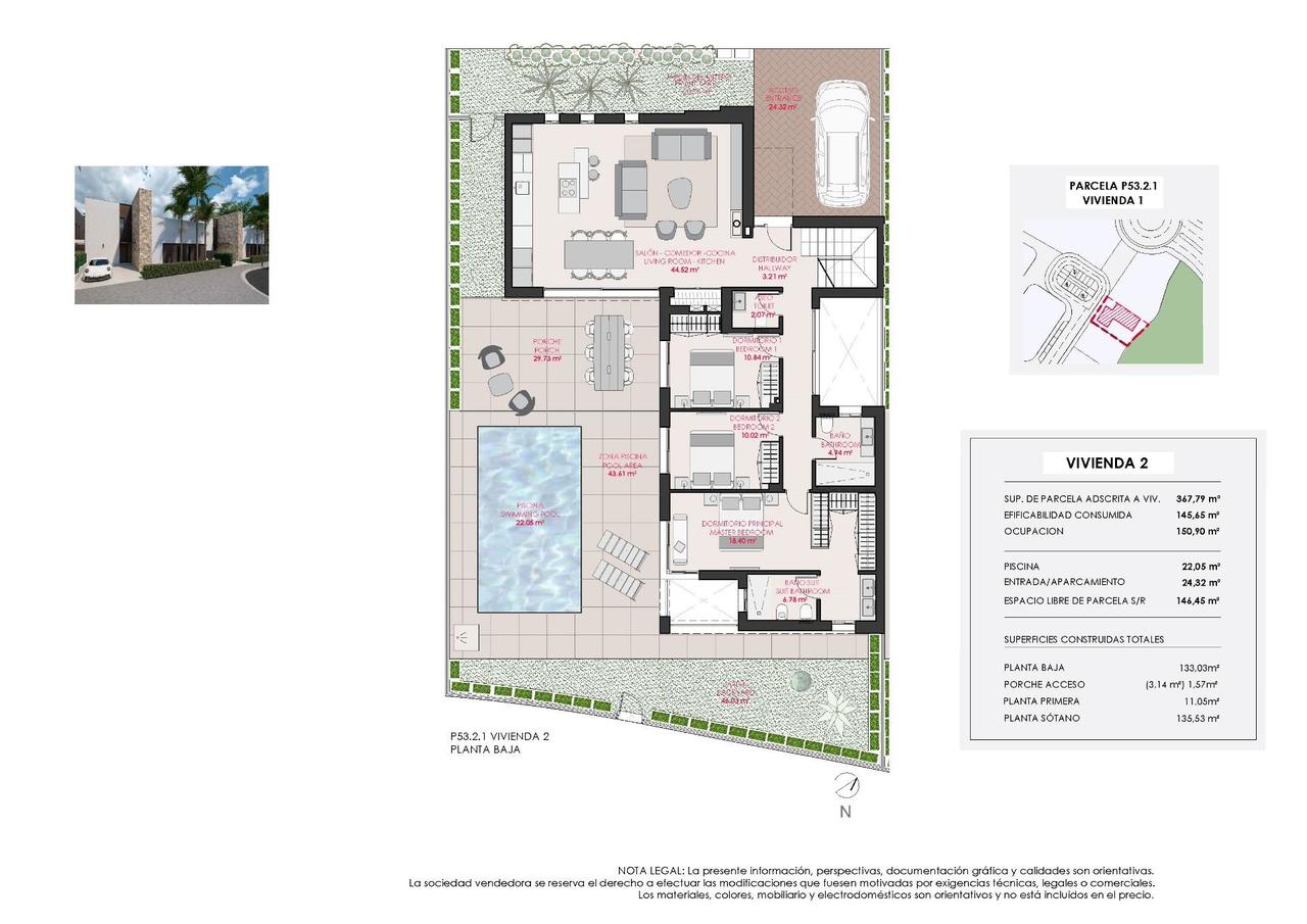 NEW BUILD VILLAS IN PRIVATE GATED RESORT IN PROVINCE OF MURCIA New Build villas in private gated resort in the Murcia region, surrounded by excellent golf courses and just 10 minutes from the sandy beaches of the Mar Menor Sea. Villas build over of 2 floors and has 3 bedrooms, 2 bathrooms and a guest toilet and are designed with a contemporary style and open concept, consisting of a fully equipped kitchen and living-dining room, fitted wardrobes, private garden with the pool and off road parking space, private solarium. Large villa of 146m² plus a very useful 120m² basement finished with smooth walls, water and electrical points. This offers the perfect opportunity to use as additional accommodation, office, gym, cinema room, children’s playroom…. Located in a private gated resort, with a main access entrance and 24 hours security. The resort is designed around an impressive 126.000 m2 green area. It comprises walking and cycling paths, sport facilities, paddle and tennis courts, a mini-golf course, gardens, dog parks, leisure areas, clubhouse…. Also in the central area is the jewel of the resort, a crystal-clear artificial lake of almost 17.000m2 of water surface, surrounded by white sandy beaches and palm trees, bringing a piece of the Caribbean to the Murcia Region. There are 2 islands in the lake, one of them has its own bar, there are also “beach Chiringuitos” spread around the lake. The resort is strategically located less than 4 km from the beach and the town of Los Alcázares, where you can practice various water sports, surrounded by several golf courses and the city of Cartagena less than 15 minutes by car and 22 km from Murcia airport, therefore having a wide cultural, gastronomic and sports offer within reach.