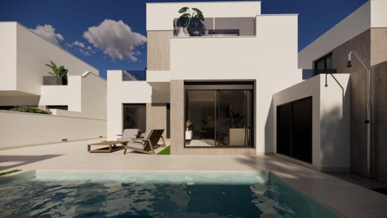 New Build Villas in San Fulgencio with Private Pool and Modern Design Exclusive development of 7 detached south-facing villas on the Costa Blanca Discover this attractive development of 7 modern detached villas in San Fulgencio, a charming municipality in the province of Alicante. Designed in a contemporary style and south-facing to maximise natural light, these homes combine comfort, quality and an ideal location on the southern Costa Blanca. Functional layout and outdoor spaces The villas are spread over two floors and offer an excellent interior layout: 3 spacious bedrooms, one of them on the ground floor 2 full bathrooms and 1 additional toilet Fully furnished open-plan kitchen with appliances included Bright living room with access to the outside Outside, each property has: A 3×5 metre private swimming pool Parking within the plot Two open terraces on the upper floor, ideal for enjoying the sun all day long Superior qualities and energy efficiency The villas are built with high-end materials and focused on sustainability: Electric blinds Exterior carpentry with double glazing Aerothermal system for hot water Pre-installation for ducted air conditioning Bathrooms fitted with furniture, screens and mirrors Strategic location in San Fulgencio San Fulgencio offers the tranquillity of a residential environment with all amenities close at hand, such as restaurants, supermarkets, pharmacies and more. In addition, its excellent location allows easy access to the main points of interest in the area: La Marina Beach – 7 km Guardamar del Segura – 10 km La Marquesa Golf Course (Ciudad Quesada) – 6 km Torrevieja town centre – 18 km Alicante-Elche International Airport – 30 km Ideal for living, investing or enjoying holidays These villas represent a unique opportunity for both permanent residence and property investment in one of the most sought-after areas of the southern Costa Blanca. Whether you want to enjoy the Mediterranean sun or as a second home, this project offers quality, design and an excellent location. Contact us today for more information or to schedule your visit and discover your new home in San Fulgencio.