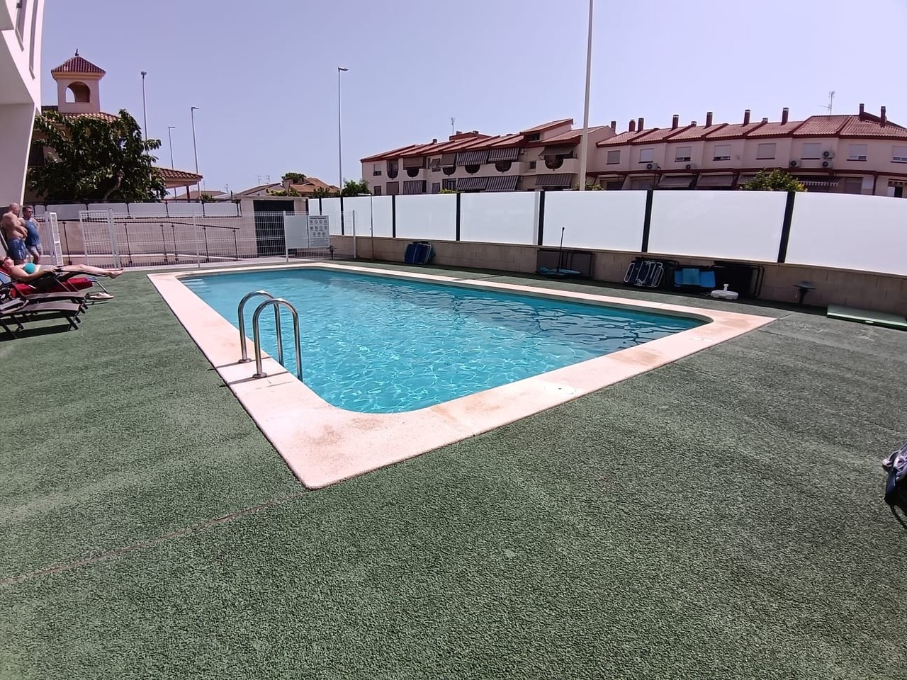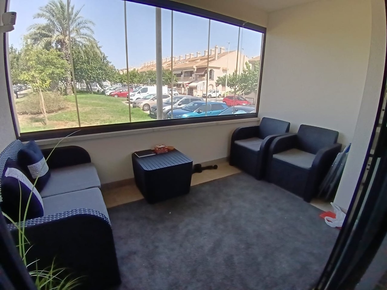 We are very pleased to bring to the market this fabulous 3 bedroom 2 bathroom ground floor beach apartment with it own private roof terrace and allocated underground parking space plus storage room. The apartment has 2 bright double bedrooms one of which has an en-suite shower room. There is also a spacious single bedroom plus a family bathroom. There is a good size lounge/dining room and a modern american kitchen. The lounge has a glazed in balcony area overlooking a green open space. There is also a lovely communual pool and a lift to access your private roof terrace and your underground parking space. The supurb sandy beach and the Mar Menor sea are only a two minute walk away and restaurants bars and all other facilities are on your doorstep. All in all this is a very rare oppotunity to own a little gem in an excellent beach location.