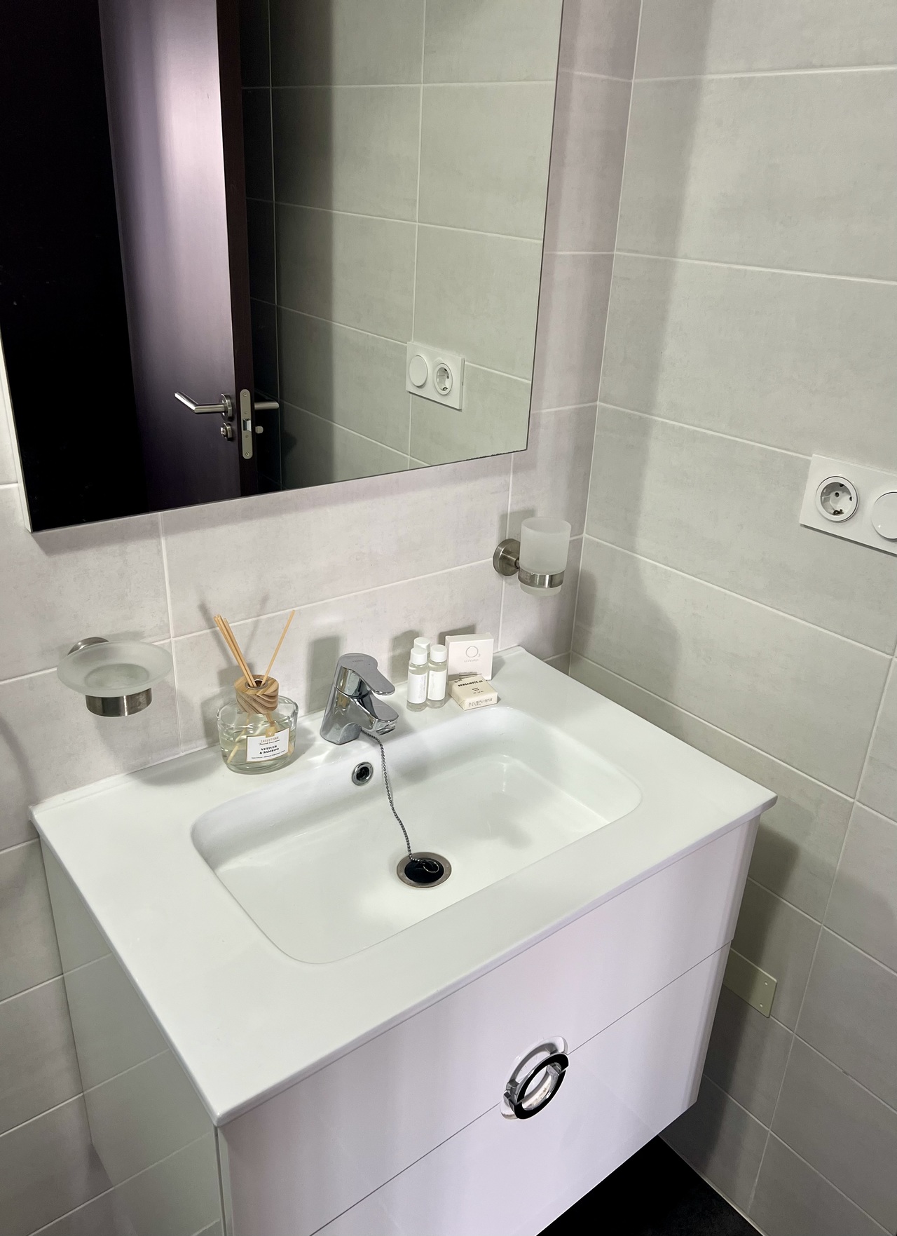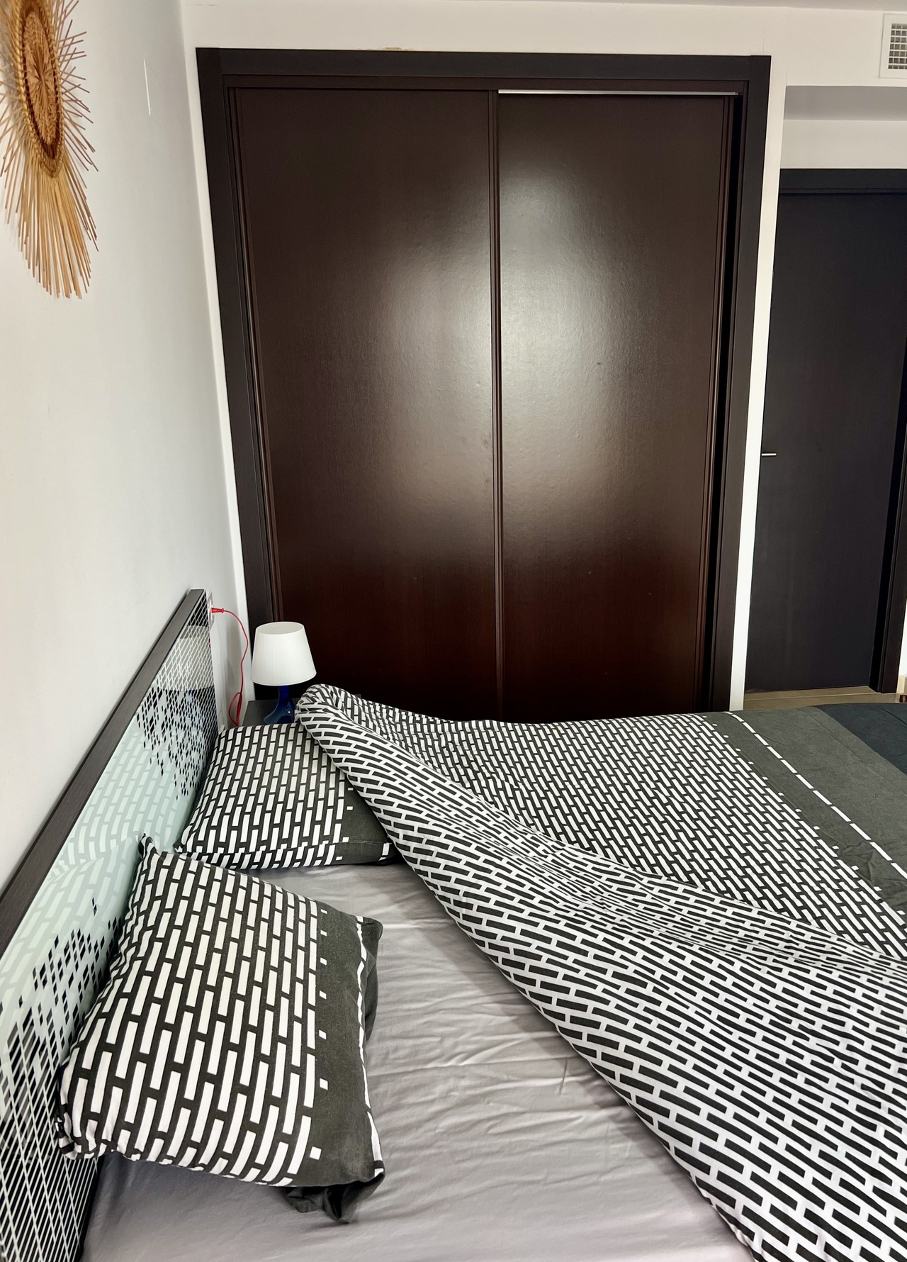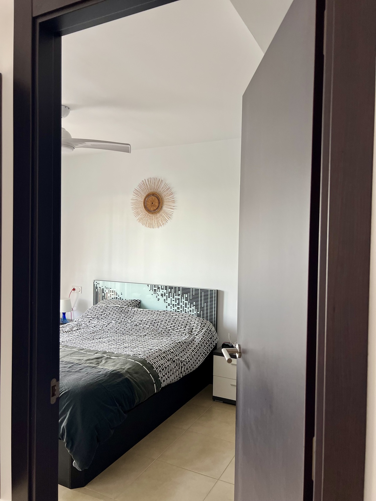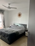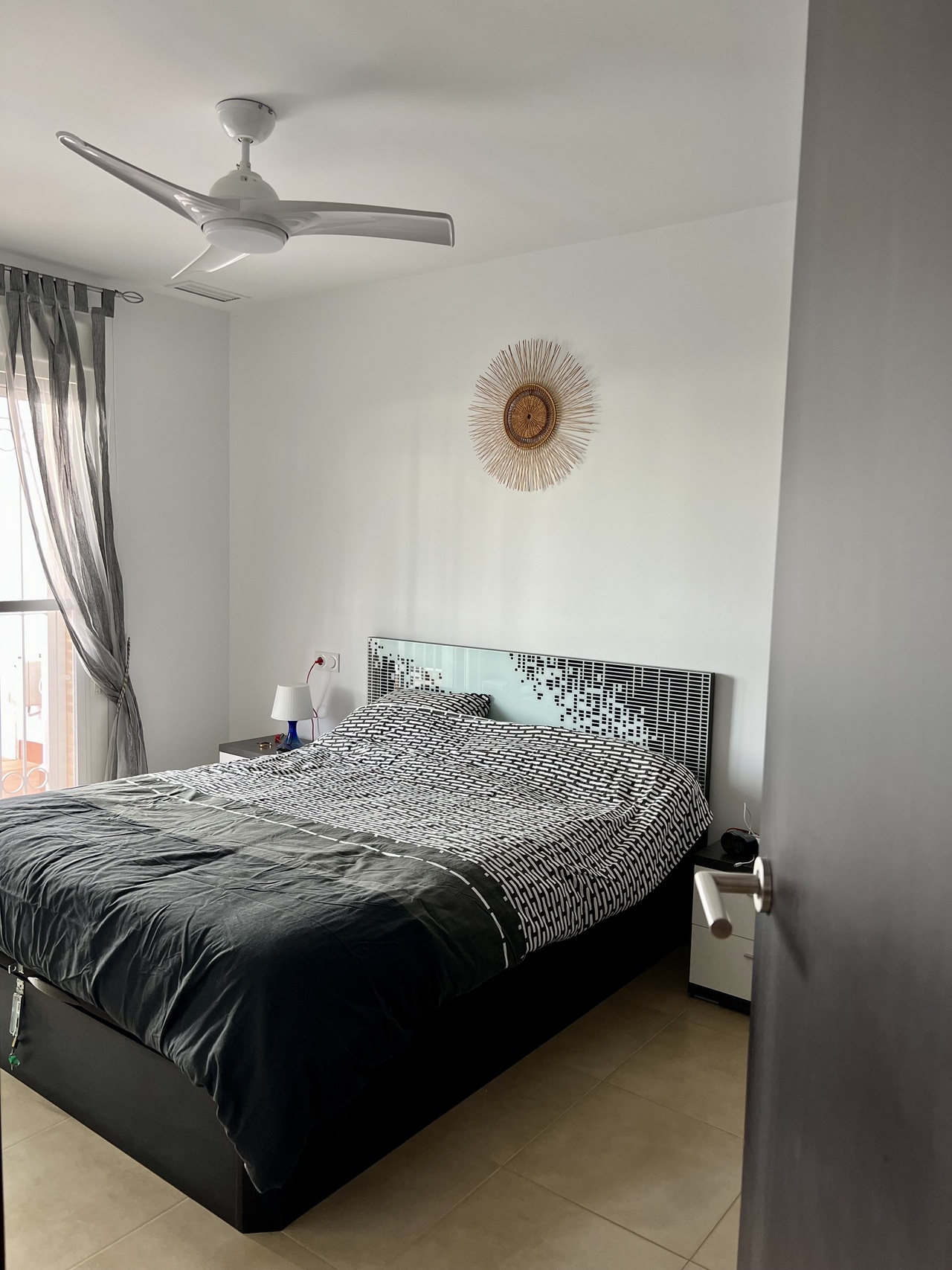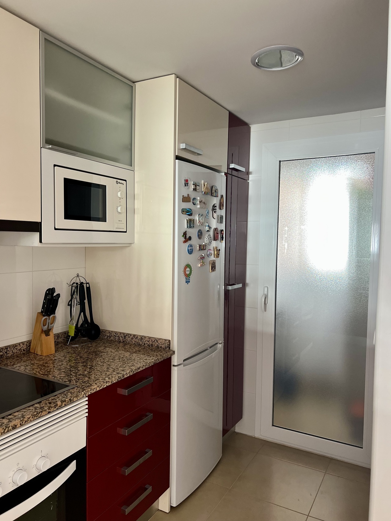 The apartment is bright and well laid out with an open plan living/dining room and fully equipped kitchen, two bedroom with fitted wardrobes, two bathrooms, and a sunny balcony. There is an intercom system to the street, air conditioning (hot/cold) throughout the property and the community is gated with attractive gardens and large impressive communal garden and swimming pool. Allocated parking space and storage room in the garage is also included in the price.