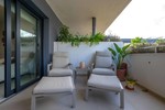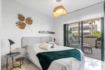The property is distributed with a bright spacious living/dining room, a modern open plan fully equipped kitchen, two bedrooms with fitted wardrobes, two bathrooms, storage/utility room, air conditioning (hot/cold) throughout the property, and a large terrace overlooking the garden and swimming pool.