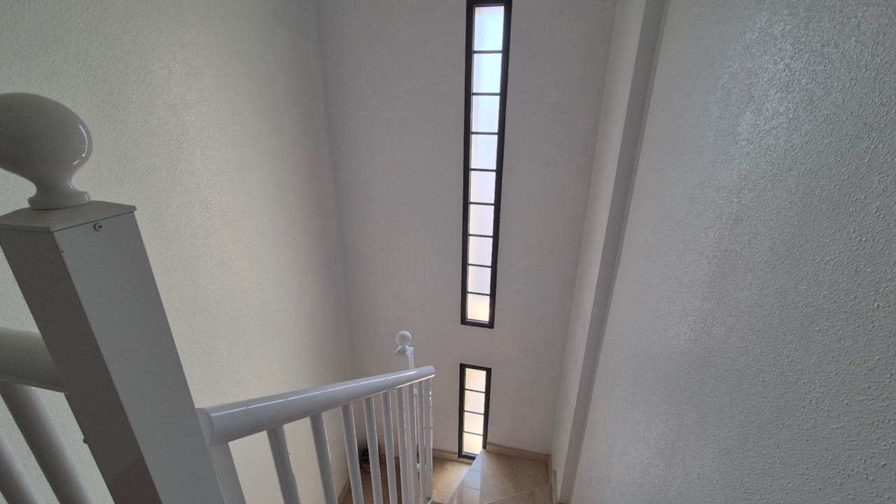 This charming 3-bedroom, 2-bathroom house is located in the desirable Aguas Nuevas area of Torrevieja, offering a peaceful and welcoming environment. The property boasts a south-facing orientation, ensuring plenty of natural sunlight throughout the day. Inside, the home features a spacious living area, well-equipped kitchen, and comfortable bedrooms, perfect for families or those seeking extra space. The master bedroom includes an en-suite bathroom, while the other two bedrooms share a family bathroom.The house also benefits from access to a communal pool, ideal for relaxing and enjoying the Mediterranean climate. Situated in a well-maintained community, this property is close to local amenities, including shops, restaurants, and beaches, making it a perfect choice for both year-round living and holiday retreats. Whether you’re looking to unwind in the tranquility of your home or take advantage of the nearby attractions, this property offers a fantastic lifestyle opportunity.