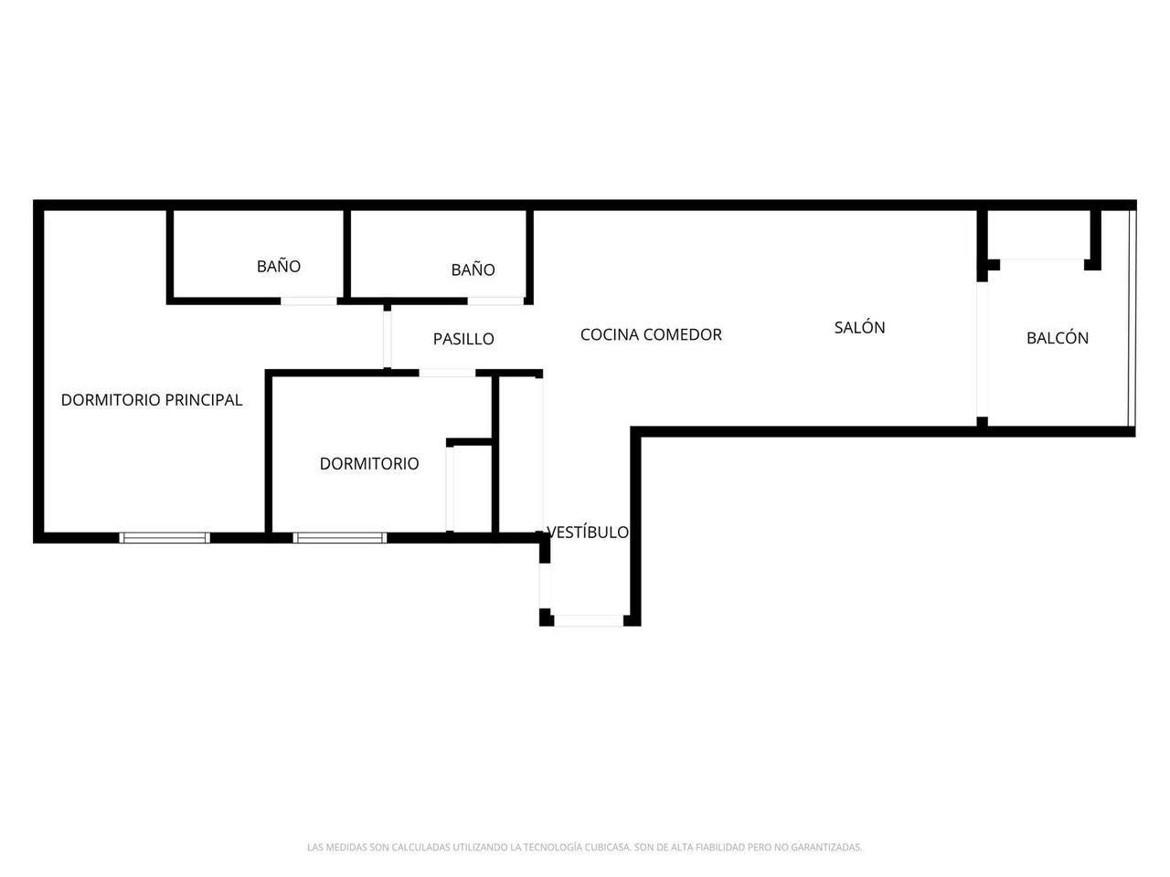 This modern apartment offers a functional and bright design in a highly convenient area of Torrevieja. It features two bedrooms, including the main one, and two contemporary bathrooms with glass screens and floating sinks—one finished in textured white tiles and the other with a wood-effect style. The bedrooms follow a balanced, minimalist decor, with large windows that provide natural light. A decorative embossed wall adds a distinctive touch. The open-plan living area includes a comfortable lounge, TV unit, and floor-to-ceiling sliding doors leading to the balcony. Neutral tones and light ceramic flooring contribute to a modern, clean look. The layout makes excellent use of the space, offering an elegant and practical home. The building includes a communal rooftop solarium and pool. Located close to all services and just a 4-minute walk to the city centre.