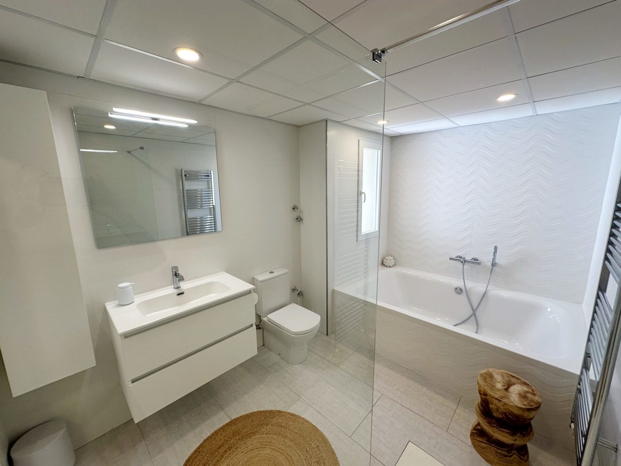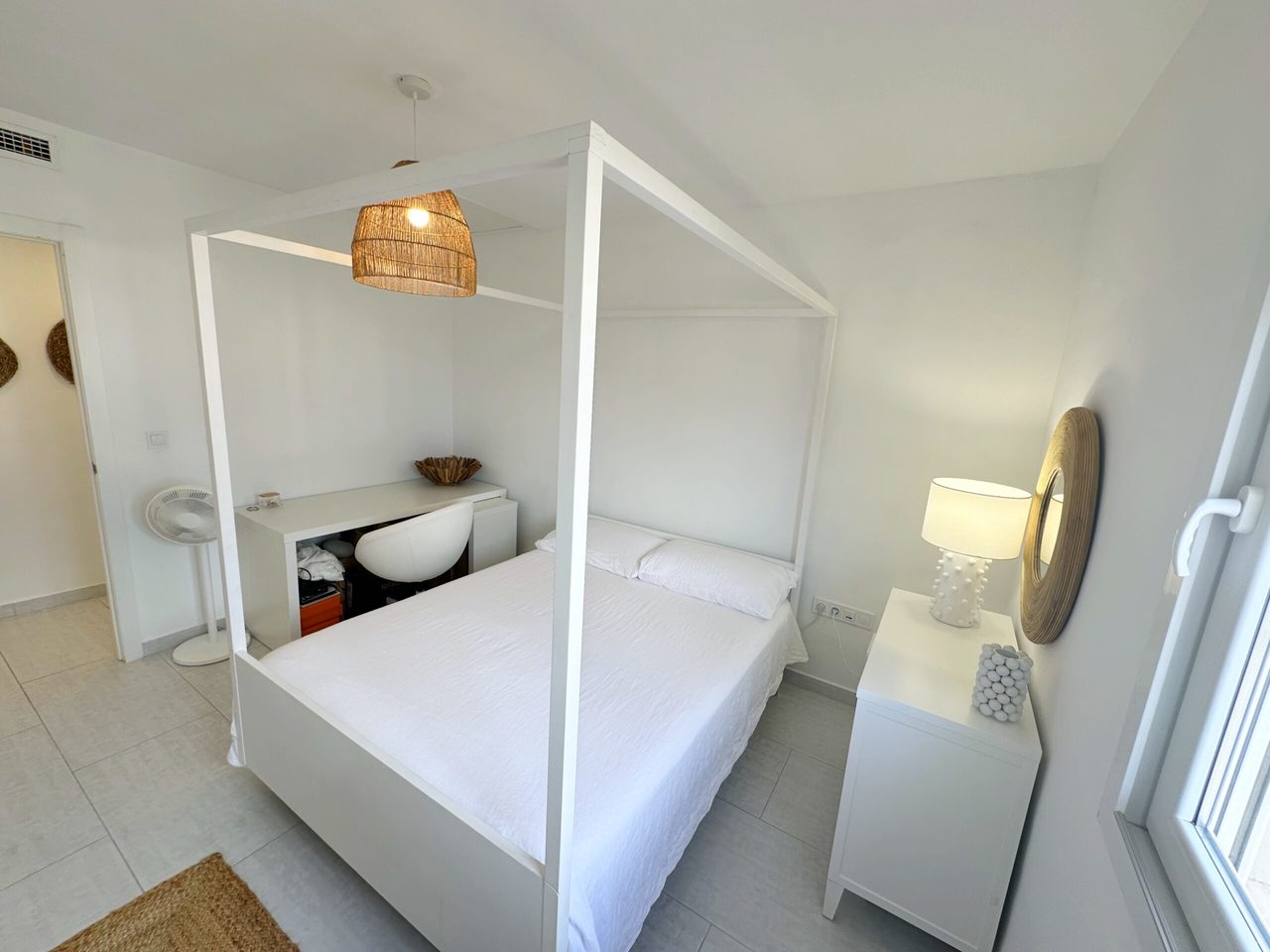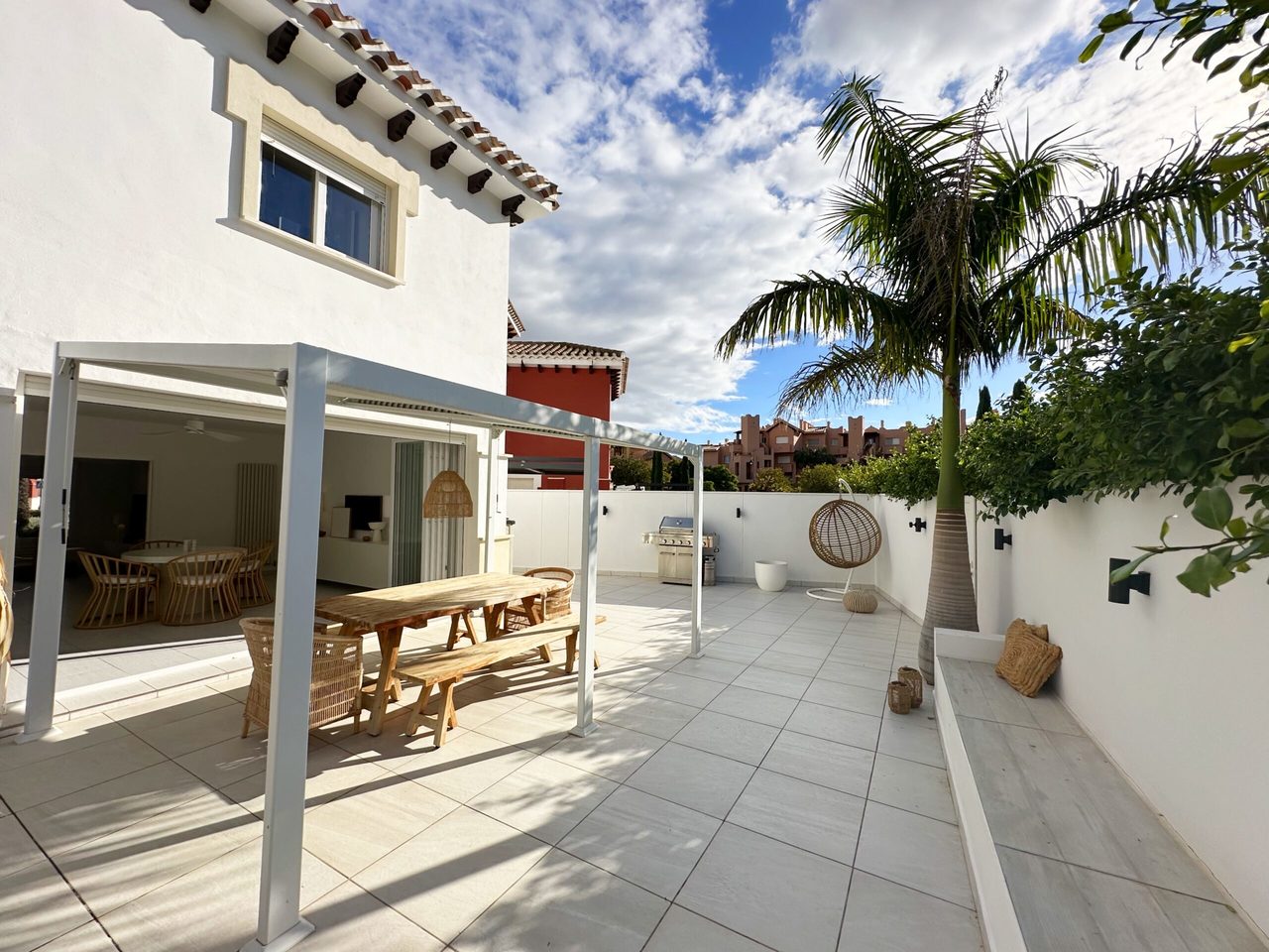 We are thrilled to offer this stunning fully renovated Baron villa for sale on the Mar Menor Golf Resort. It truly is one of a kind, it is gorgeous. The villa enjoys a South-West orientation from the secluded garden which houses a private pool. The owners have completely renovated the downstairs space creating an open plan space with bespoke kitchen, pantry, calming lounge area and sunny dining area with bifold patio doors bringing the outdoors in. An additional bedroom has been added upstairs which has been transformed into every woman’s dream – a large dressing room and walk in wardrobe. The property has solar panels, gas central heating and full aircon throughout and is being sold part furnished. The villa is in a great location on the resort – a short walk from the onsite supermarket and MMGR club with mini golf, padel, gym and restaurant. The Mar Menor beach town of Los Alcazares is a short drive, Murcia airport is 20 minutes away and Alicante is roughly an hours drive.The villa has a lovely outlook to the front looking on to a fountained square. The owners have added an office with separate access to the right of the property. This could be used as an office or gym. You enter the villa into the newly tiled hallway with the stairs to the right and downstairs cloakroom. This leads into the gorgeous open plan kitchen diner. You’ll find a white gloss bespoke kitchen with built in appliances, central island with storage and seating and a fantastic open pantry. We have kitchen envy here! There is a spacious dining area – perfect for entertaining or family gatherings. Just off the kitchen diner is the spacious lounge with large L shape sofa. Bi-fold patio doors bring the outside in, flowing out to the covered pergola and al fresco dining area. The garden has been fully tiled with several storage cupboards either side of the villa. You’ll find a beautiful heated pool in a very private garden with plenty of room for sunbathing and entertaining. To the front is a driveway providing off road parking.Upstairs there are four bedrooms. The master bedroom has wardrobes and a newly installed en-suite shower room. There are two double guest bedrooms and a huge family bathroom with walk-in shower and massive bath tub. The fourth bedroom is being used as a dressing room with a separate walk in wardrobe – a fantastic use of space. All the floors throughout have been replaced along with all bathrooms. This is a bespoke, fully modernised villa showcasing premium finishes, open-plan living, and a custom-built dressing room designed for both elegance and functionality. Please contact us now to book your viewing appointment, you will not be disappointed.