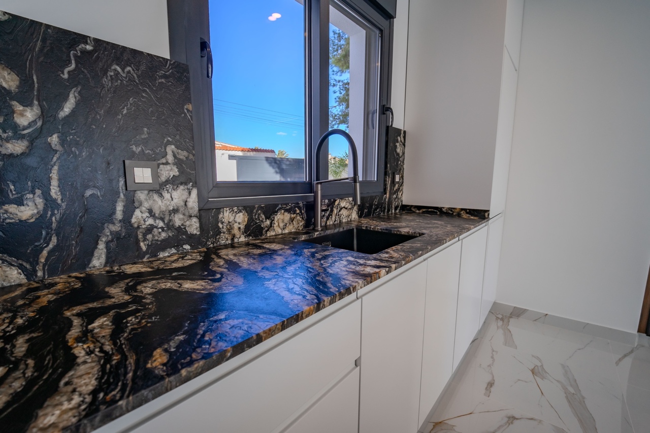4 spacious bedrooms, all designed as suites4 luxury en-suite bathroomsBedrooms prepared with built-in wardrobes, ready to be installed to each client’s preferred layoutModern open-plan kitchen with premium appliances and striking natural-stone countertopsUnderfloor heating throughout the entire propertyAir-conditioning (hot/cold) in every room