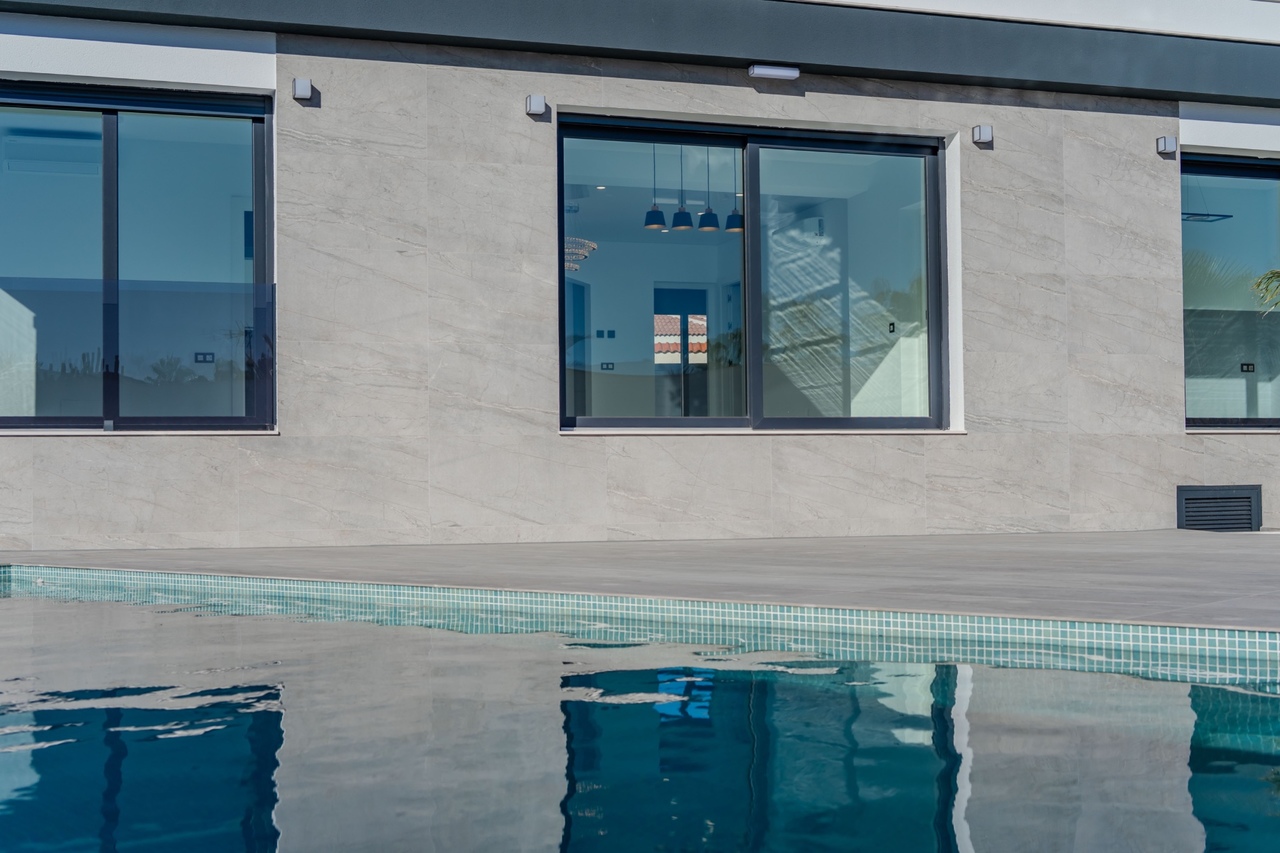 Beyond the electric entrance gate, you’ll find a stylish, low-maintenance Mediterranean garden that frames the home perfectly. The private swimming pool sits alongside expansive terraces designed for sunbathing, dining, or entertaining.