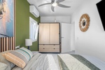 The main floor comprises four bedrooms, all equipped with individual air conditioning, two full bathrooms, a spacious and bright living-dining room, and a functional open-plan kitchen that integrates seamlessly into the living area.