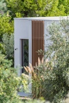 Inside, life slows down. A spacious living and dining area invites long conversations, laughter, or simply the pleasure of watching nature through the large windows. Next to the hidden TV and the fireplace waiting for winter, sliding doors reveal a space ready to become your reading nook, home office, relaxation area or creative retreat.