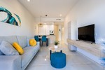 Discover this bright and modern second-floor apartment in a contemporary new-build project in Orihuela Costa, less than six months old! Designed for maximum comfort, it combines clean lines, open spaces, and modern finishes, creating a sense of space and well-being in every corner. Upon entering, you’re greeted by an open-plan living and dining area, bathed in natural light from the terrace. The open-plan layout flows seamlessly into the American-style kitchen, fully equipped with state-of-the-art appliances, ideal for those seeking functionality without compromising on style. The apartment features two spacious bedrooms, both with fitted wardrobes that maximize space and add elegance to the overall design. The two modern and stylish bathrooms feature high-quality finishes, creating a relaxing and sophisticated atmosphere. Amenities that make the difference: This property is ready to move into and is sold fully furnished, as shown in the photos.Tastefully decorated, it is designed to create a warm and inviting atmosphere.Air conditioning provides year-round comfort. Security door and intercom for added security.Direct elevator access to all floors.Perfect outdoor spaces to enjoy the Mediterranean climate. The complex offers a beautiful communal swimming pool, an ideal place to relax, sunbathe, or spend time with family. The property also includes a private underground garage with one parking space, as well as a storage room, perfect for additional storage. Strategic location in Orihuela Costa The property is situated in a prime location, surrounded by amenities and attractions:Beach: just 8 minutes away, perfect for day trips.Leisure areas, restaurants, and shops: 3 minutes away.International golf courses: 7 minutes away.Airport: 40 minutes away, with easy access to national and international flights.