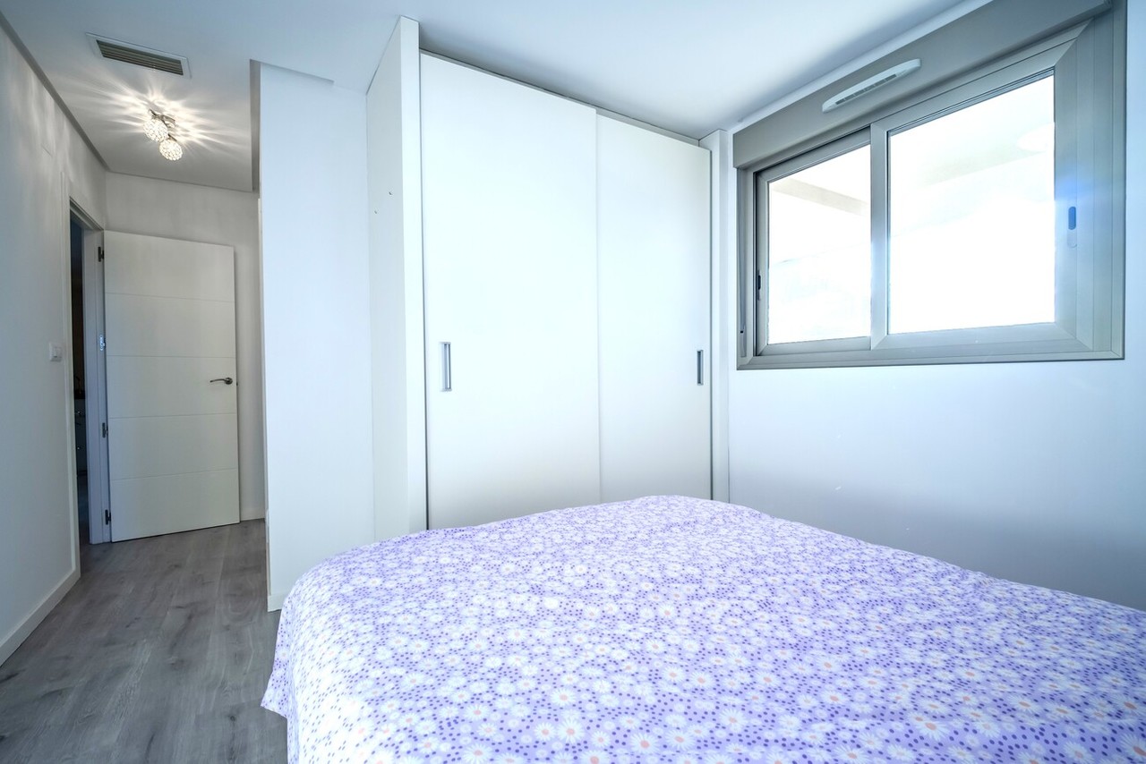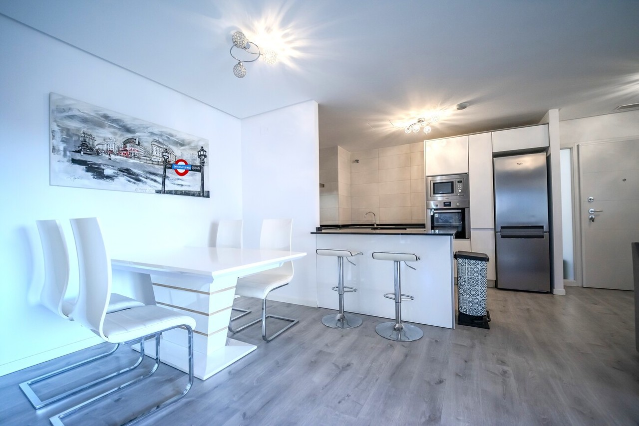 This modern 2-bedroom, 2-bathroom apartment in Altos de Mediterráneo, Los Dolses offers contemporary living with a bright, spacious feel throughout. The home features two generous bedrooms with fitted wardrobes, stylish bathrooms with walk-in showers, and a south-facing 22m² terrace ideal for relaxing or enjoying al fresco dining. It has ducted air con throughout the apartment for cooling and heating. Residents benefit from exceptional communal facilities, including an indoor heated pool for year-round use, a fully equipped gym, sauna, and an additional outdoor pool for the summer months. Perfectly located within walking distance of all amenities and the La Zenia Boulevard shopping centre, the property is also just a short drive from several top golf courses and beautiful nearby beaches.
