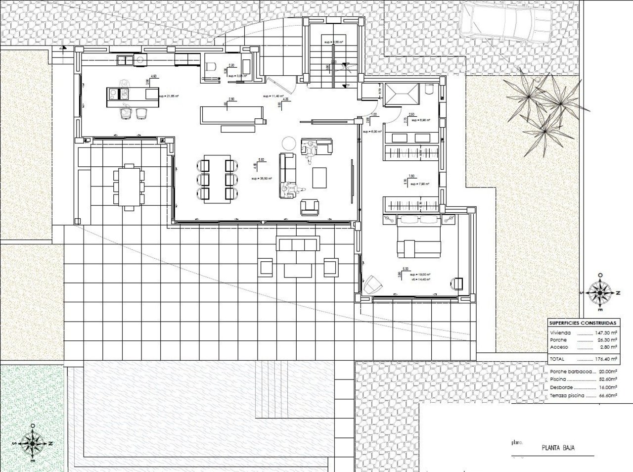LUXURY NEW BUILD VILLA IN MORAIRA New Build Luxury villa with the best qualities, and within walking distance of the beautiful beaches and the center of Moraira. This luxury villa is distributed over 3 floors: on the ground floor (147.30m2) there is a large bright living room next to the open kitchen with a cooking island, a guest toilet and a bedroom with an en-suite bathroom. On the outside of this floor we find the swimming pool and the barbecue area. Then we go up to the upper floor (133.65m2) where we find 3 spacious rooms with their bathroom en suite. Finally the basement floor, where it leads to a double garage and laundry. EXTRAS: Technal carpentry with safety glass, full kitchen with Siemens appliances, full Roca brand bathrooms and taps, LED lighting, aerothermal system for hot water and underfloor heating, ducted air conditioning (hot and cold) throughout the house, solar panels, fitted wardrobes, electric shutters, interior alarm, pre-installation of exterior alarm and security cameras. Rectangular pool with overflow system of 12×4.5 meters, barbecue area of 22m2, laundry room, finished garden. Automatic access doors. Energy classification A. South orientation. Moraira is a small town with good restaurants, bars and plenty of supermarkets around. There is a very pleasant beach right next to town that is great for families. The seafront offers tremendous views of Penon Ifach across the bay in Calpe. The coast road getting there is well worth doing with some spectacular views. Moraira situated about 1 hour 15 minutes North up the A7 from Alicante airport its fairly easy to get to. It’s about the same distance or a little less South from Valencia airport.