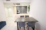 Playa Flamenca, Residencial Amanecer de Luxe: Second-floor apartment (81 m2) with sea and pool views. Features 2 bedrooms, 2 bathrooms (1 en-suite), and an open-plan kitchen/living area leading to a large terrace. Includes storage, garage, and access to a gym and BBQ area. Sold fully furnished.