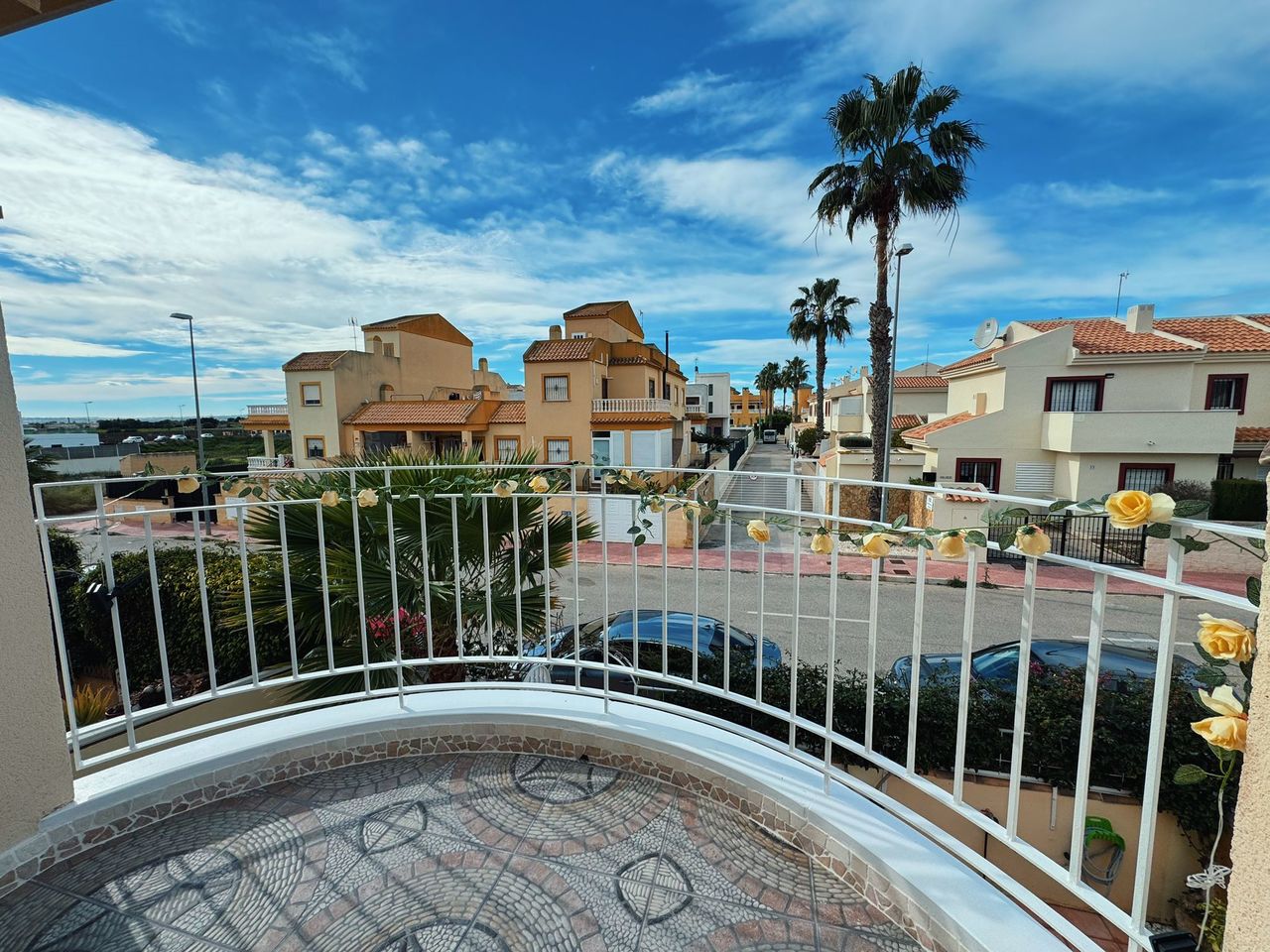 Modern townhouse for sale in Ciudad Quesada. The built area is 83 m². This duplex offers three bedrooms, two bathrooms, a separate kitchen and a living room. The kitchen has access to an inner courtyard. One of the bedrooms has access to a terrace. There is also a terrace at the entrance to the house.The complex features a communal swimming pool.The distance to the sea is 8 km.Online reservation is available, as well as mortgage financing from the bank at an annual interest rate of 4–6%.