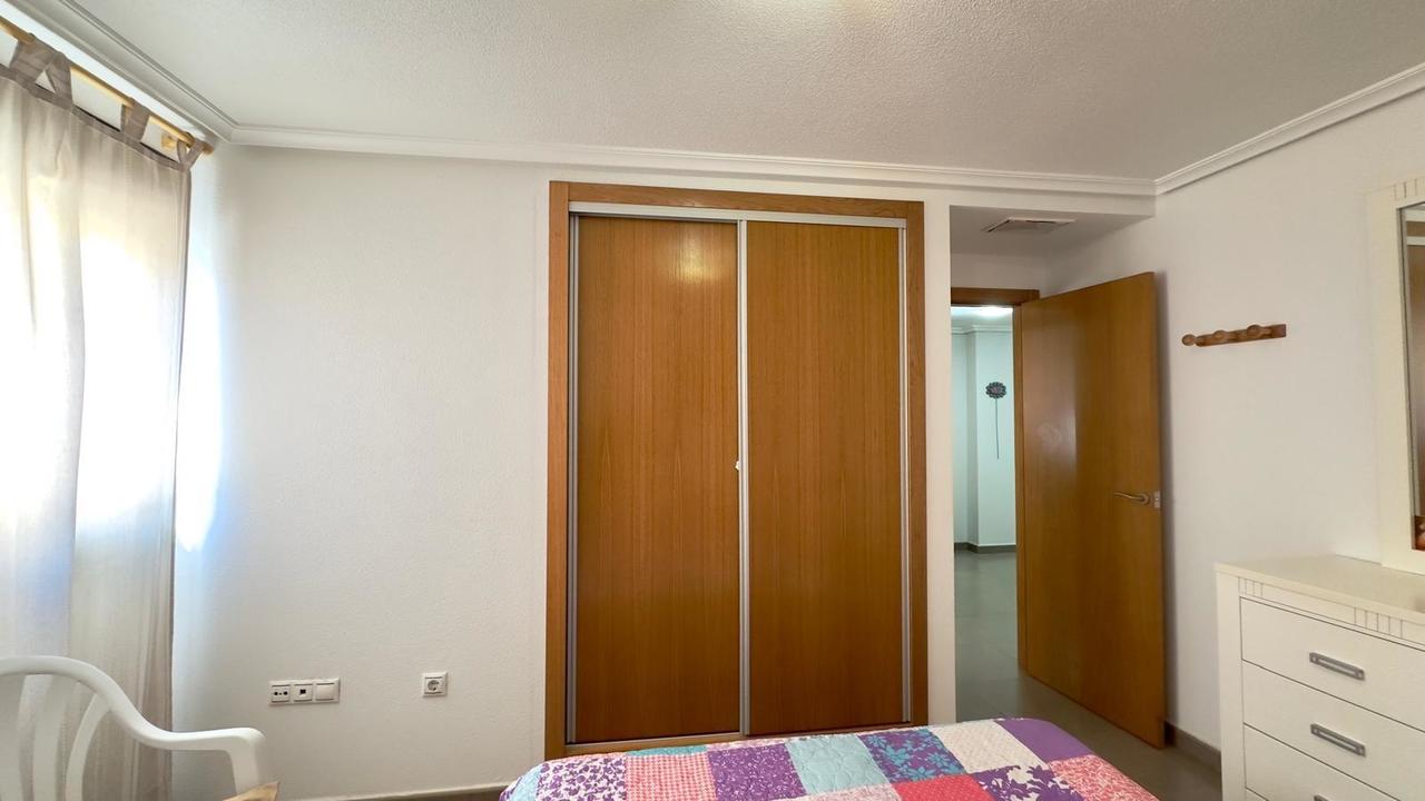 Cozy and functional 2-bedroom, 1-bathroom apartment on one of Torrevieja’s most central and sought-after streets, the well-known Calle Apolo, a pleasant walk from the beach and surrounded by all amenities year-round. Surroundings and Location Living on Calle Apolo means enjoying the authentic heart of Torrevieja, in a well-established urban area, well-connected and with a wide range of shops, supermarkets, banks, cafes, and restaurants just steps from your door. The main shopping streets, such as those near the seafront promenade and Plaza de la Constitución, are just a few minutes’ walk away, allowing you to run your daily errands without needing a car. Playa del Cura and the marina are also a short stroll away, making this apartment an ideal option for those who want to combine urban living with proximity to the sea on the Costa Blanca. Building and Residential Atmosphere The apartment is located in a contemporary building typical of Torrevieja’s city center, with a well-maintained entrance and a primarily residential atmosphere, where families and young couples live side by side. and foreign residents who have chosen the city for its climate and quality of life. Apolo Street is made up of multi-story apartment blocks, with shops on the ground floor and apartments above, creating a lively environment during the day but a peaceful one at night, perfect for permanent living or as a second home. It is a flat, walkable area with paved streets and an orderly urban layout, facilitating access for people of all ages and making daily commutes comfortable and pleasant walks. Interior Layout Upon entering the apartment, a foyer leads to the living area, where the living-dining room is arranged around the open-plan kitchen, creating a single spacious and practical area that makes the most of the available space. The layout naturally separates the social area of the apartment from the sleeping area, where the two bedrooms and bathroom are located, providing privacy for families or those who wish to combine living and working remotely. The interior design follows the concept of a functional urban apartment, with narrow hallways and well-proportioned rooms. Proportioned, designed to offer comfort in daily use without sacrificing distinct areas for relaxing and entertaining. Living-dining room The living-dining room is the heart of the home, a bright space that receives natural light from the balcony and is ideal for both relaxing and gatherings with friends and family. Its rectangular layout allows for a comfortable sofa facing the television area, as well as a dining table for several people, creating a versatile environment that adapts to different decorating styles, from the most modern to the most Mediterranean. The direct visual connection with the open-plan kitchen and access to the balcony reinforce the feeling of spaciousness, making this a fluid space where daily life unfolds naturally, from leisurely breakfasts to more social evenings. Equipped open-plan kitchen The home features an equipped open-plan kitchen that integrates seamlessly into the living area, offering a comfortable and modern solution for those who value practicality and direct contact with the rest of the house while cooking. This type of kitchen facilitates communication with the living room and allows for easy access to the dining area. Guests or family members can enjoy meals while cooking, and the design allows natural light from the balcony to reach the work area. The furniture and countertop layout is designed to maximize space, with an organized cooking, preparation, and storage area, ideal for both vacation use and year-round living in the apartment.