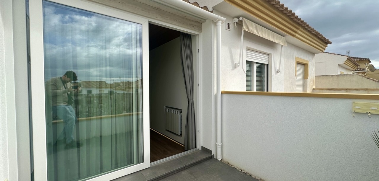 Discover this beautifully updated duplex home located in the sought-after residential area of Los Almendros-La Florida, Orihuela Costa. This modern property offers a perfect blend of comfort, contemporary design, and practical living space — ideal as a family residence or a holiday home. Spread over two levels, the house features three bedrooms plus a dedicated office/study, a large luminous living roomand a fully renovated kitchen with ample space for dining. On the ground floor, you’ll find one bedroom, a guest toilet, and the expansive kitchen and living area. Upstairs there are two further bedrooms, a family bathroom with stylish shower, and the office space that opens onto a private terrace — perfect for morning coffee or evening relaxation. The property benefits from full modern upgrades including completely new electrical systems and plumbing, gas central heating with radiators, electric underfloor heating in kitchen and bathrooms, and ducted air conditioning throughoutfor year-round comfort. High-quality windows with insect screens and electric anti-theft shutters ensure quiet and secure living. Outdoors, the entrance porch adds extra outdoor living space, and there’s a generous basement/utility area that can be used for storage, entertainment, gym or hobby space. The home also includes a garage space and separate storage room. Located in a peaceful and established residential neighbourhood with easy access to supermarkets, schools, pharmacies, restaurants and entertainment facilities including Zenia Boulevard, the beaches of Orihuela Costa and major road connections are all within reach.