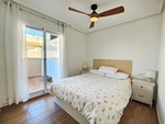 Penthouse for sale with a 40m2 corner terrace near the Parque de las Naciones in Torrevieja. The penthouse lies on the 5th and last floor in a building with an elevator. The penthouse has 3 bedrooms and 2 bathrooms, a modern fitted open plan kitchen with top brand appliances and a bright living room. The penthouse lies on a corner and has a large terrace of 40 square meters in the shape of an L to which all rooms have access. On the terrace there is a storage room and a storage cupboard. From this terrace you can enjoy a beautiful sunset over the salt lakes of Torrevieja. All three bedrooms are air-conditioned. The main room has a built-in wardrobe and an en-suite bathroom. The building lies close to all shops, several restaurants and bars, bus stop, pharmacy, banks etc… The beach and the promenade are within walking distance (1km). Parking is easy on the street (free) and there is also an area next to the building where you can park your car for free.