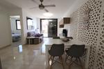 Lomas de Cabo Roig, Ground floor bungalow with a large tiled garden of about 30 m2, 64 m2 house with 2 bedrooms, 2 bathrooms, open kitchen to living room, back patio from which you can access the communal pool, the house is sold furnished and with air conditioning.