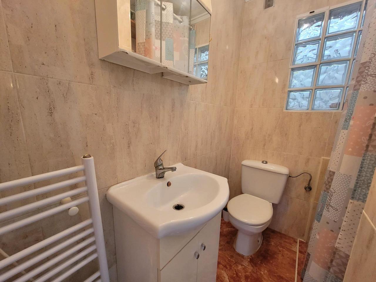 Cosy semi-detached corner house with two floors and solarium, near La Mata Natural Park. The ground floor consists of a large front terrace, a spacious living room with an open plan kitchen, a double bedroom with an en-suite bathroom, a guest toilet and a storage room (under the exterior staircase). The upper floor consists of a small attic with a double bedroom, a bathroom, a storage room and a solarium with clear views of the surrounding landscape. The two floors are connected by an exterior staircase. The two bathrooms have showers. The kitchen is fully equipped. Furnished. Built-in wardrobes in the bedrooms. Air conditioning in the living room and the master bedroom. The property is in very good condition. NO community fees! Located close to all amenities, restaurants, cafes, parks, about 10 minutes by car from the Carrefour supermarket, the Habaneras Shopping Centre, the Park in La Siesta with its sports facilities (paddle courts, basketball, an so on.) and leisure areas for children and about 15/20 minutes by car from the beach.