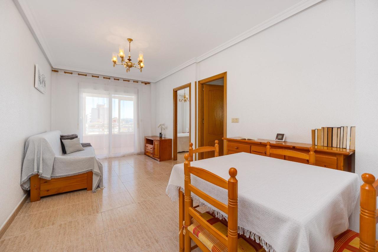 PRECIOSO, AMPLIO Y TRANQUILO Descubre este encantador apartamento en Torrevieja, ubicado en la zona de la estación de autobuses. Con una superficie construida de 66 m² y útil de 60 m², esta propiedad destaca por su buen estado y luminosidad. Tiene una terraza con vistas despejadas orientada al este. El inmueble cuenta con dos habitaciones dobles que ofrecen amplitud y comodidad. Su cocina independiente es perfecta y en toda la vivienda se conecta con un ambiente tranquilo. El edificio presenta una comunidad limpia y bien cuidada; además podrás relajarte durante los calurosos días estivales gracias a su piscina comunitaria. Situado a solo 1600 metros del mar, estarás cerca de todo lo que necesites: supermercados, restaurantes, farmacia, centro de salud etc